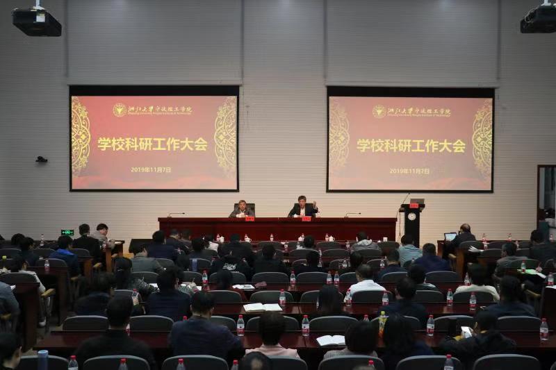 在国家大力实施创新驱动发展战略和学校转型提升的新形势下,为进一步理清发展思路、深挖科研潜能、构筑长效机制,助力学校早日实现“省内一流、全国百强”的办学目标,11月7日下午,学校在学术交流中心404报告厅召开科研工作大会。院长章献民讲话,党委书记胡征宇主持会议,副院长杨灿军作学校科研工作报告。校领导,各部门、直属各单位负责人,各学院党政班子成员、科研秘书、研究所所长、全体教授、副教授等近200名教师参加会议。