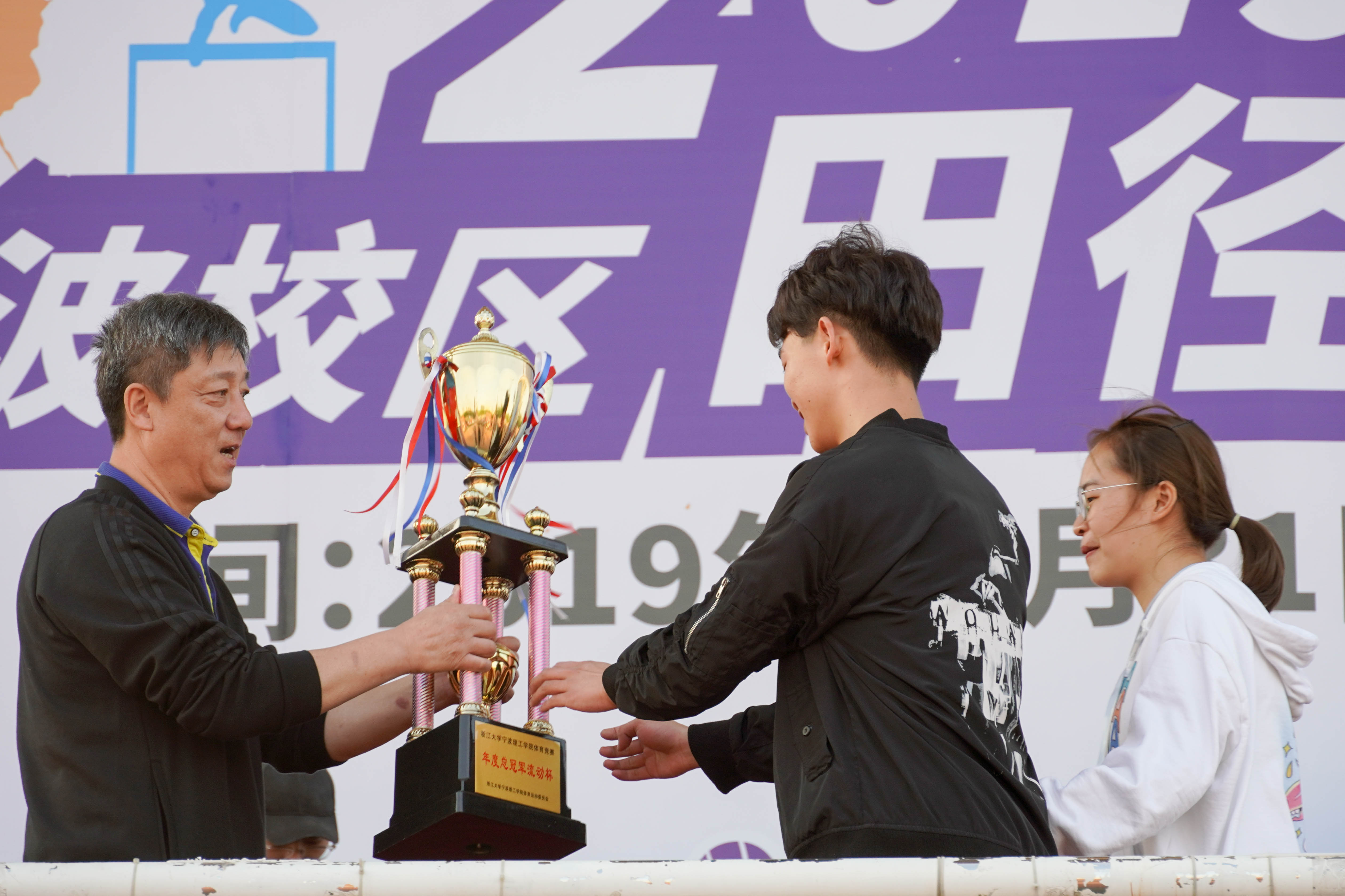 浙江大学校长助理、浙江大学宁波校区党工委书记、浙江大学宁波理工学院党委书记胡征宇,浙江大学宁波理工学院党委副书记、副院长冯建波,浙江大学宁波理工学院副院长梅乐和出席闭幕式并为获奖单位颁奖。冯建波致闭幕词时勉励师生要传承和发扬在运动会中所体现的精神和风格,齐心协力为把宁波校区建设成为浙江大学高水平产教融合示范基地,为把浙江大学宁波理工学院建设成为高水平应用型大学而不懈奋斗。总裁判长史光辉宣布比赛成绩,宁波理工学院体委副主任朱天明主持闭幕式。