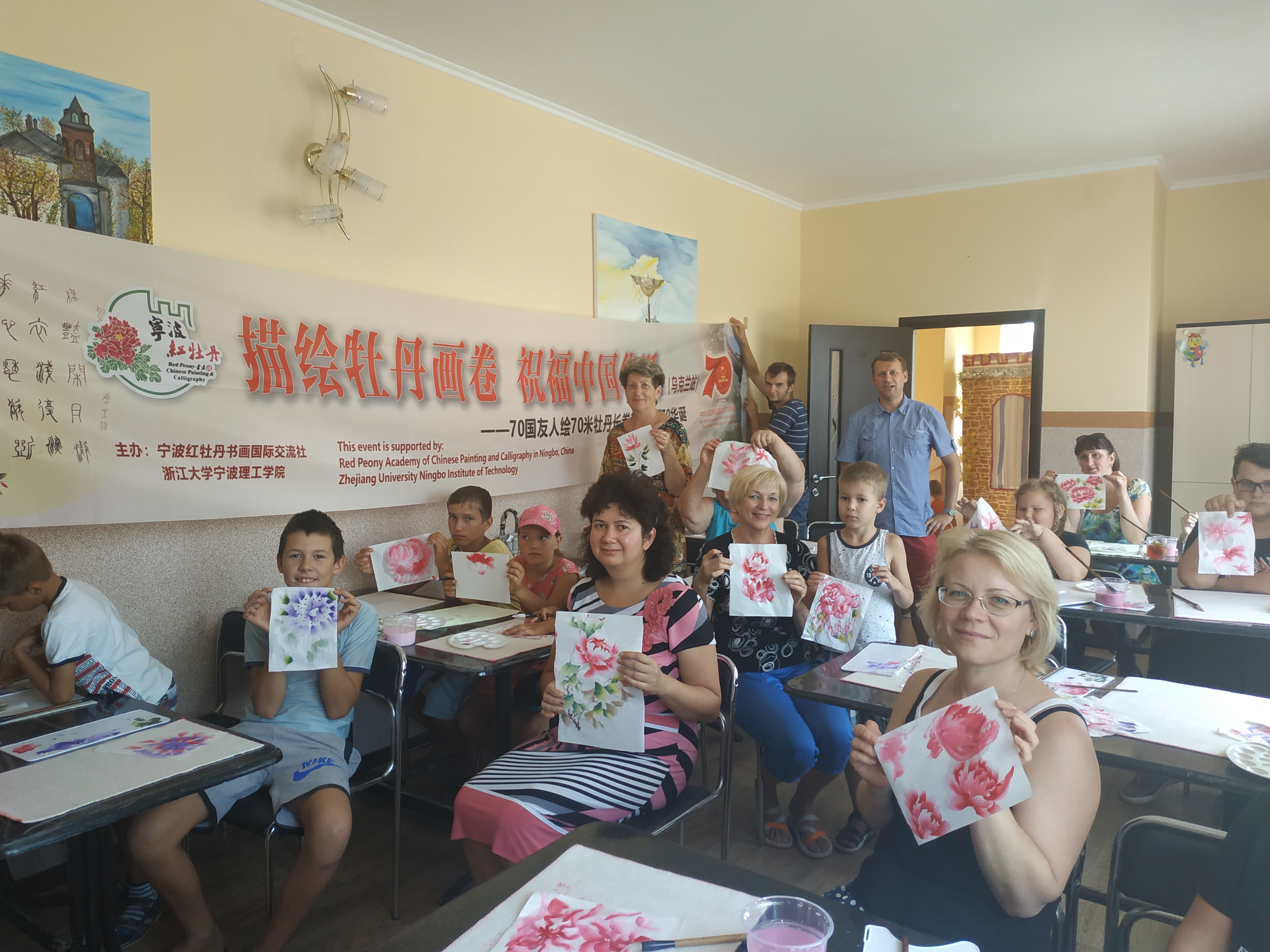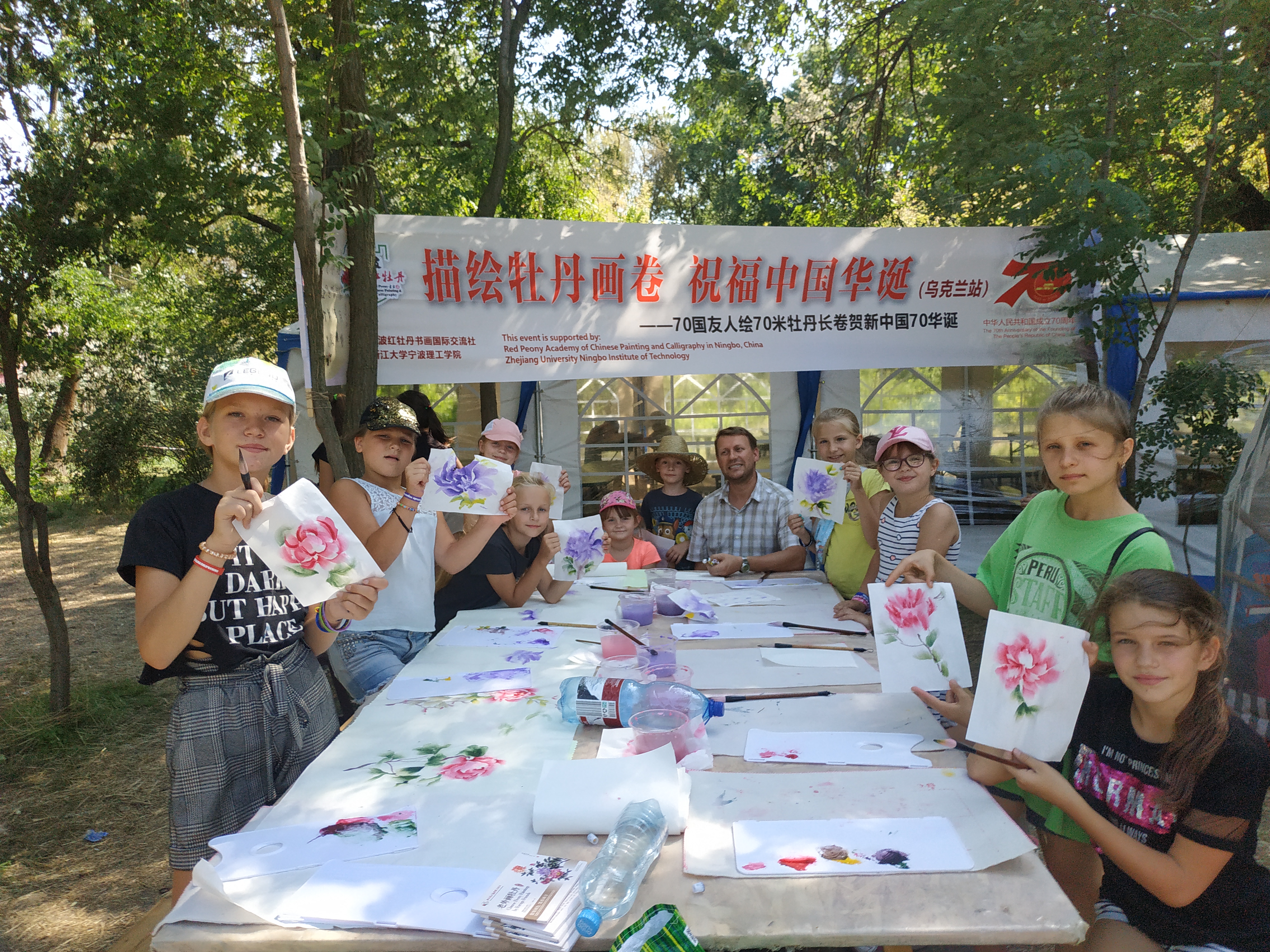 中外人士共绘牡丹长卷,学校乌克兰籍专家为新中国成立70周年献祝福