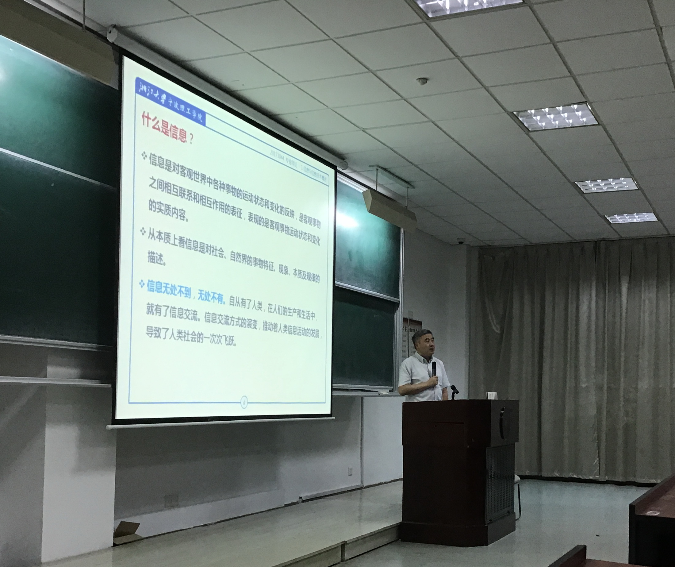 9月18日晚,章献民院长在NC201为信息学院2019级电子信息工程110余名新生上了一堂生动的专业导论课。