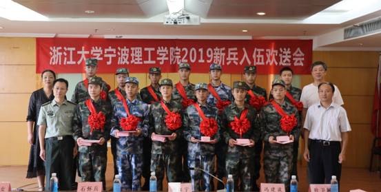 9月9日,学校在行政楼举行2019年大学生新兵入伍欢送会。学院党委书记胡征宇,学院党委副书记、副院长冯建波,鄞州区人武部政委石怀兵,学工部部长陆亚女,各相关二级学院党委副书记、退役学生代表和新入伍学生15人出席欢送仪式,会议由人武部副部长叶卫树主持。