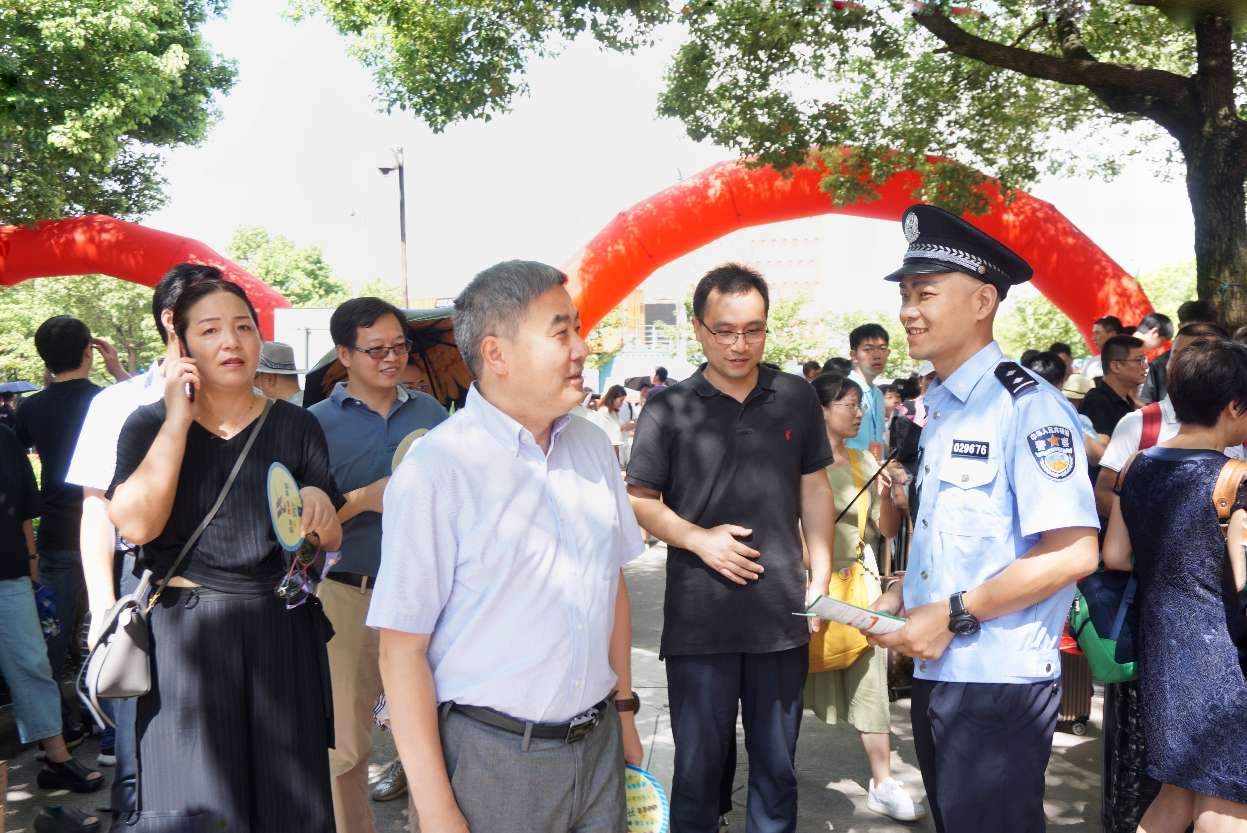 “你们辛苦啦”“今天天气热,自己也要做好防暑”,在新生报到点、微校园、通讯一条街等迎新摊位,章献民、胡征宇向工作人员表示慰问。在辖区文华派出所进校安全宣传点,章献民认真聆听讲解,对警校联动、辖区干警冒着酷暑深入新生报到现场一线开展防诈骗宣传表示感谢。在通讯服务点,胡征宇要求大家始终把服务学生放在第一位,为同学们营造一个和谐有序的环境。