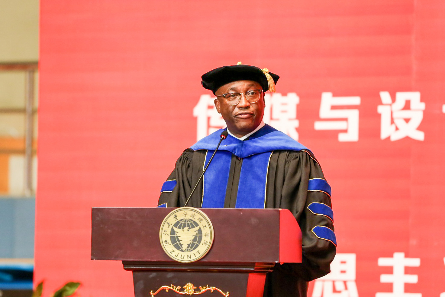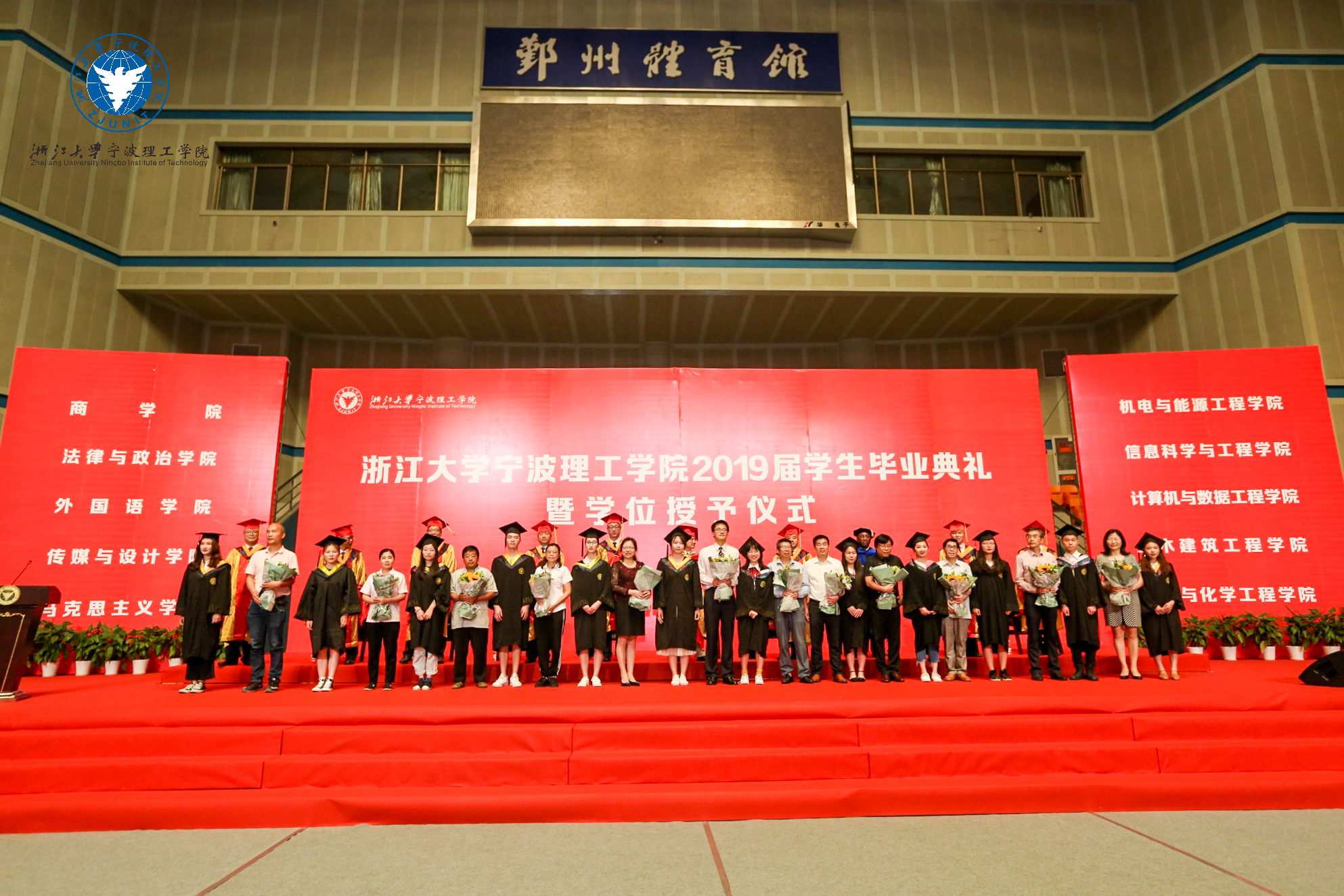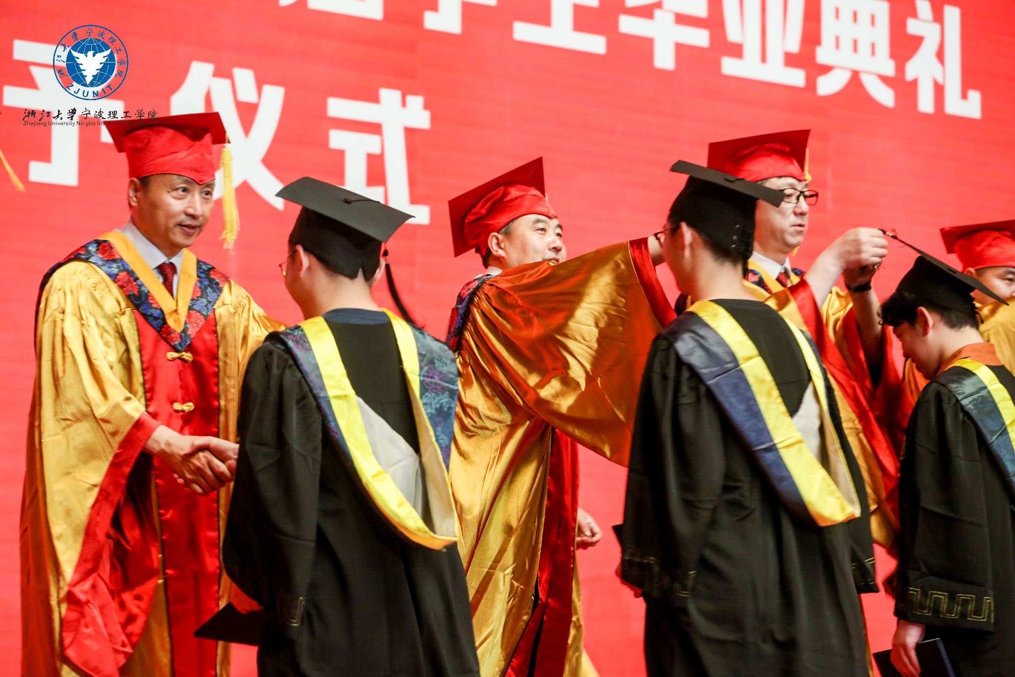 典礼现场气氛热烈,“明德弘毅,开物启新”“走向社会、情系母校、心念同窗”等条幅鲜艳醒目,雄壮的国歌声拉开典礼序幕。浙江大学党委副书记郑强出席毕业典礼并讲话。浙江大学宁波理工学院领导班子成员章献民、胡征宇、冯建波、毛才盛、黄光杰、梅乐和、杨灿军、顾禹标,印第安纳波利斯大学教务长史蒂芬·考理森博士,毕业生家长、校友、教师代表,学院各部门、各二级学院党政负责人,全体教务员、辅导员、毕业班班导师等出席毕业典礼和学位授予仪式。彭增军教授、朱大勇教授、高章华教授与学院领导、二级学院院长一同为毕业生颁授学位证书。