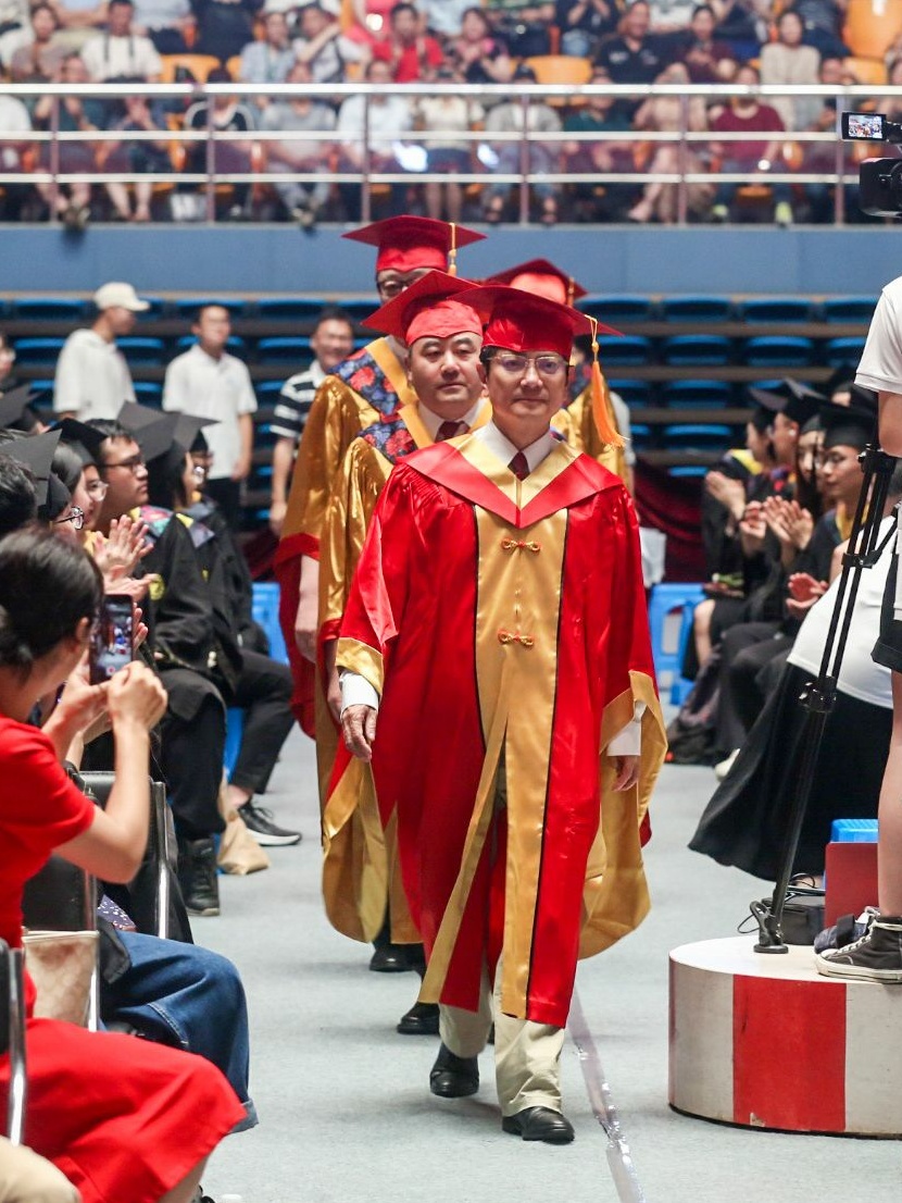 学位授予仪式现场,悠扬韵动的《浙江大学校歌》久久回荡。章献民手持学术权杖,与导师们一同步入会场;毕业生依序上台接受学士学位,一抹流苏从右向左,是谢幕也是序幕,自此我们终成校友。冯建波主持学位授予仪式,梅乐和宣读授予学士学位决定。洋溢的笑脸、深情的拥抱、用力的击掌,定格下幸福的瞬间,记录了甜甜的味道。