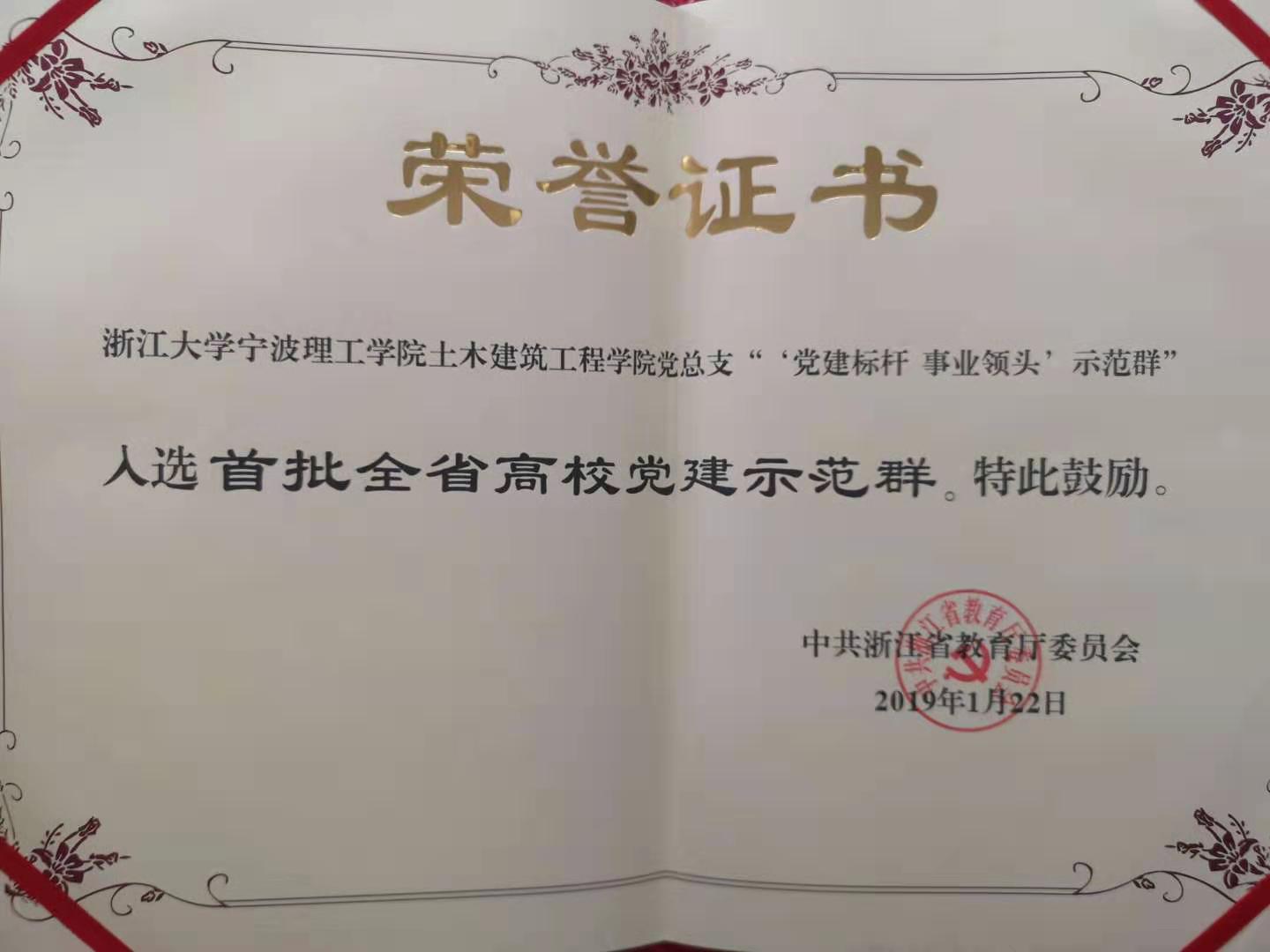 土木建筑工程学院党总支坚持政治建设为统领,制度建设贯穿始终,高树标杆、高设标准,坚持在“五个到位”、“七个有力”上下功夫。学院党总支深刻把握党建责任层层传导中的“堡垒”功能,牢固树立“严实效”工作导向,扣紧责任链条,守好一段渠、种好责任田;充分发挥政治核心作用,共筑事业发展“同心圆”,构建形成“研究所+教工党支部”、“专业+学生党支部”的强依托、强联动基层党组织框架,深化探索“党建+”工作体系,积极培育“一名党员一面旗帜”学生党员墙示责任岗、“甬尚雷锋”志愿服务工作室等一批党建与思政育人工作品牌,为学院人才培养、科学研究、社会服务提供坚强有力的精神动能。土木建筑工程学院党总支2018年连续荣获“全国党建工作标杆院系”建设单位和省高校党建“双百”示范群等荣誉。