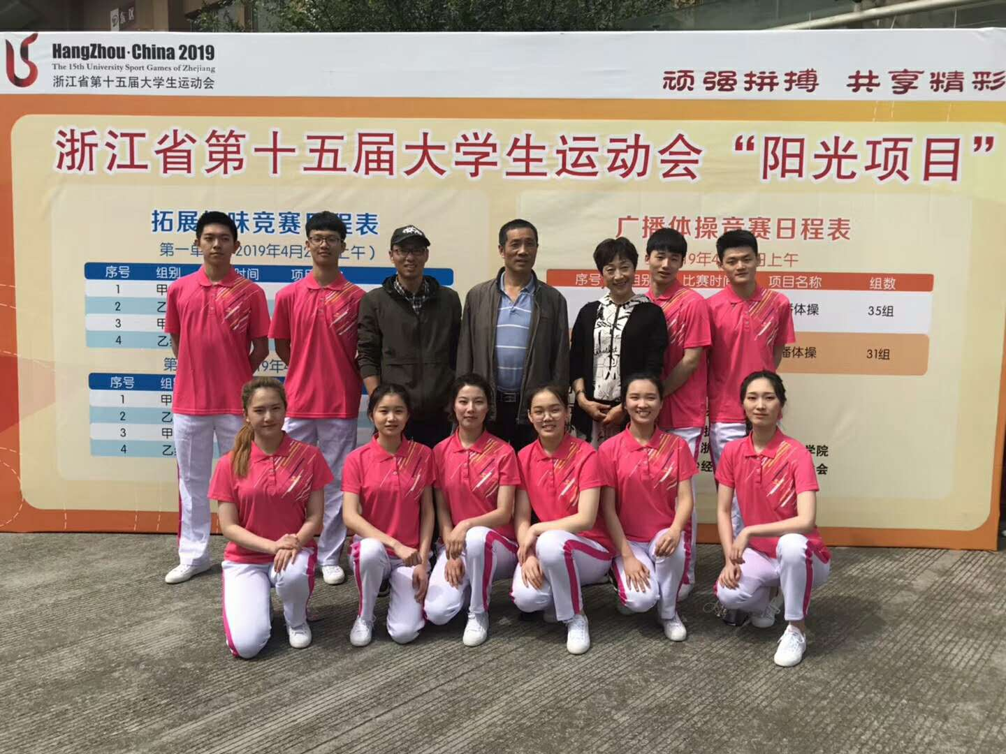 4月27日,浙江省第十五届大学生运动会“阳光项目”竞赛活动在杭州正式拉开帷幕。来自全省高校2948名运动员组成的79支代表队参加本次竞赛。经过紧张激烈的角逐,由开云教练陈玉玲、董小燕和马勇老师代领的团队获得广播体操比赛二等奖,拓展趣味比赛二等奖,轮滑比赛二等奖以及自由式轮滑男子两个一等奖、女子两个二等奖,同心鼓、大脚板、毛毛虫竞技三个单项二等奖的好成绩。