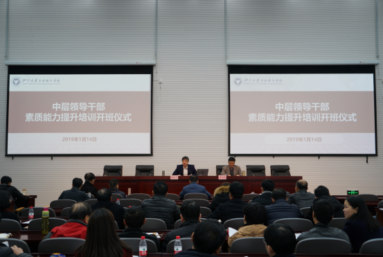 1月14日上午,学校中层干部培训班在学术交流中心一号楼正式开班。党委书记、党校校长胡征宇作开班动员,党委副书记、副院长、党校副校长冯建波,副院长毛才盛、梅乐和,党委副书记、纪委书记顾禹标等出席。党委副书记、党校副校长黄光杰主持开班仪式,全体中层干部参加培训。