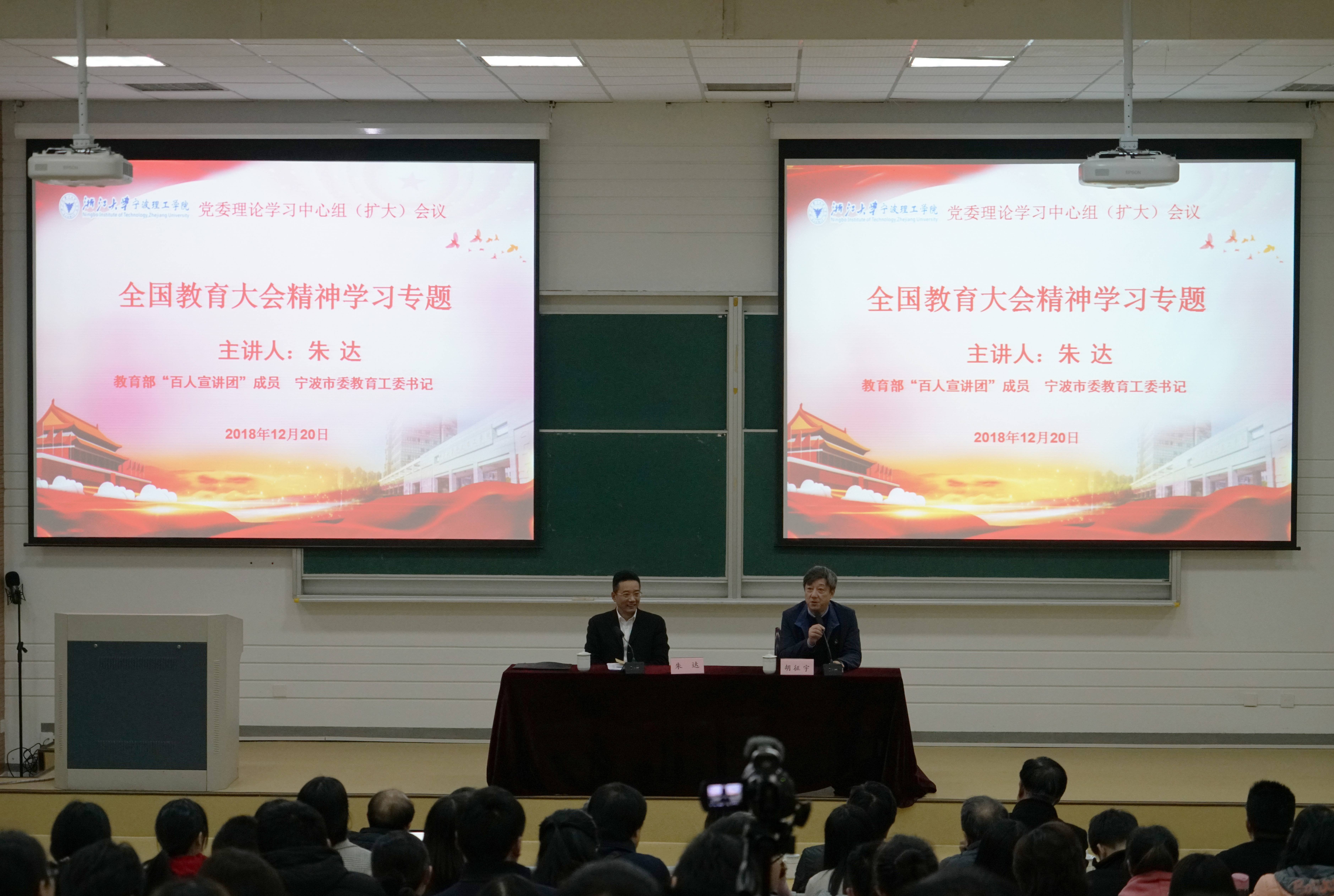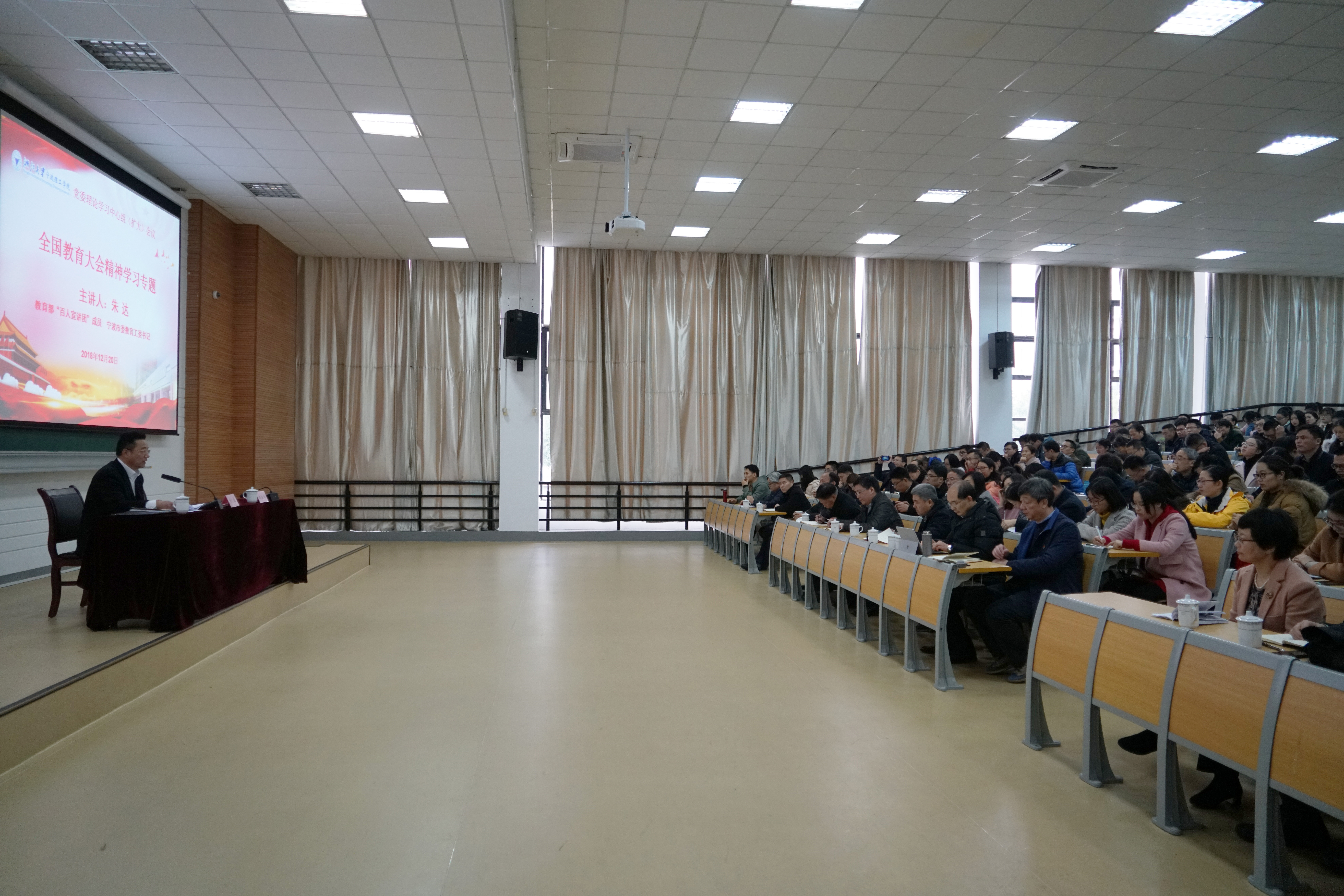 12月20日下午,学校党委理论学习中心组(扩大会议)特邀教育部“百人宣讲团”成员、宁波市委教育工委书记朱达宣讲全国教育大会精神。