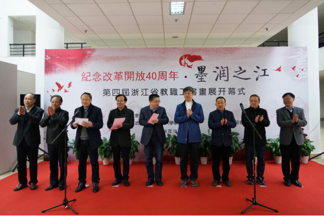 胡征宇表示,“庆祝改革开放四十周年•墨润之江”第四届浙江省教职工书画展,不仅是一场雅人深致的文化盛宴,也是一堂别具风格的育人美课,更是一次穿越书画、对话历史的精神之旅。