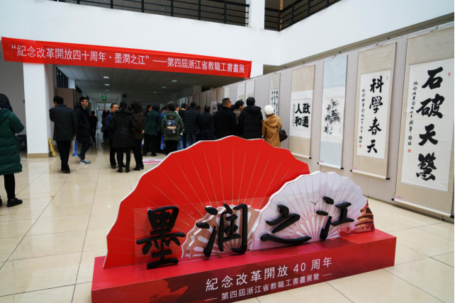 12月12日下午,由浙江省教育工会主办,浙江省教育书法协会、浙江大学宁波理工学院、浙江书法家协会教育委员会承办的“庆祝改革开放四十周年.墨润之江”——第四届浙江省教职工书画展在开云NC大厅隆重开展。本次活动是为庆祝改革开放四十周年,讴歌祖国改革开放四十年来取得的辉煌成就,围绕省教育工会“立德树人,促进教育科学和谐发展”的工作主线和“民主管理、服务教工”的工作重点,组织和动员全省教职工积极投身文化校园、文化浙江建设而举办的。