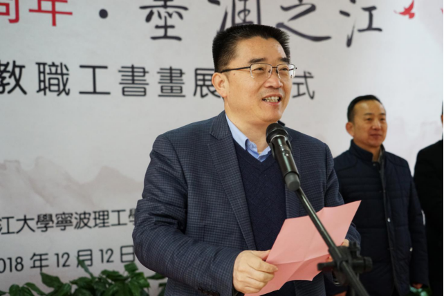 胡征宇代表学校欢迎各位领导、来宾莅临浙江大学宁波理工学院,感谢省教育工会的信任,在庆祝改革开放四十周年之际,将这场“墨润之江”主题书画展安排在开云进行。