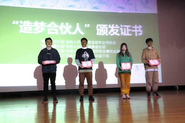 开幕会上,冯建波副书记为“光合造梦”平台标志揭幕,陈立明部长为首批进驻平台的“造梦合伙人”代表颁发证书。平台正式上线,现已发布“青春讲习计划”“青春原创计划”“青春偶像计划”“青春变形记”四个梦想认领板块,共计22个圆梦项目。青年可通过学生会“吾盟君”微信公众号认领梦想清单和申请制造新梦想。