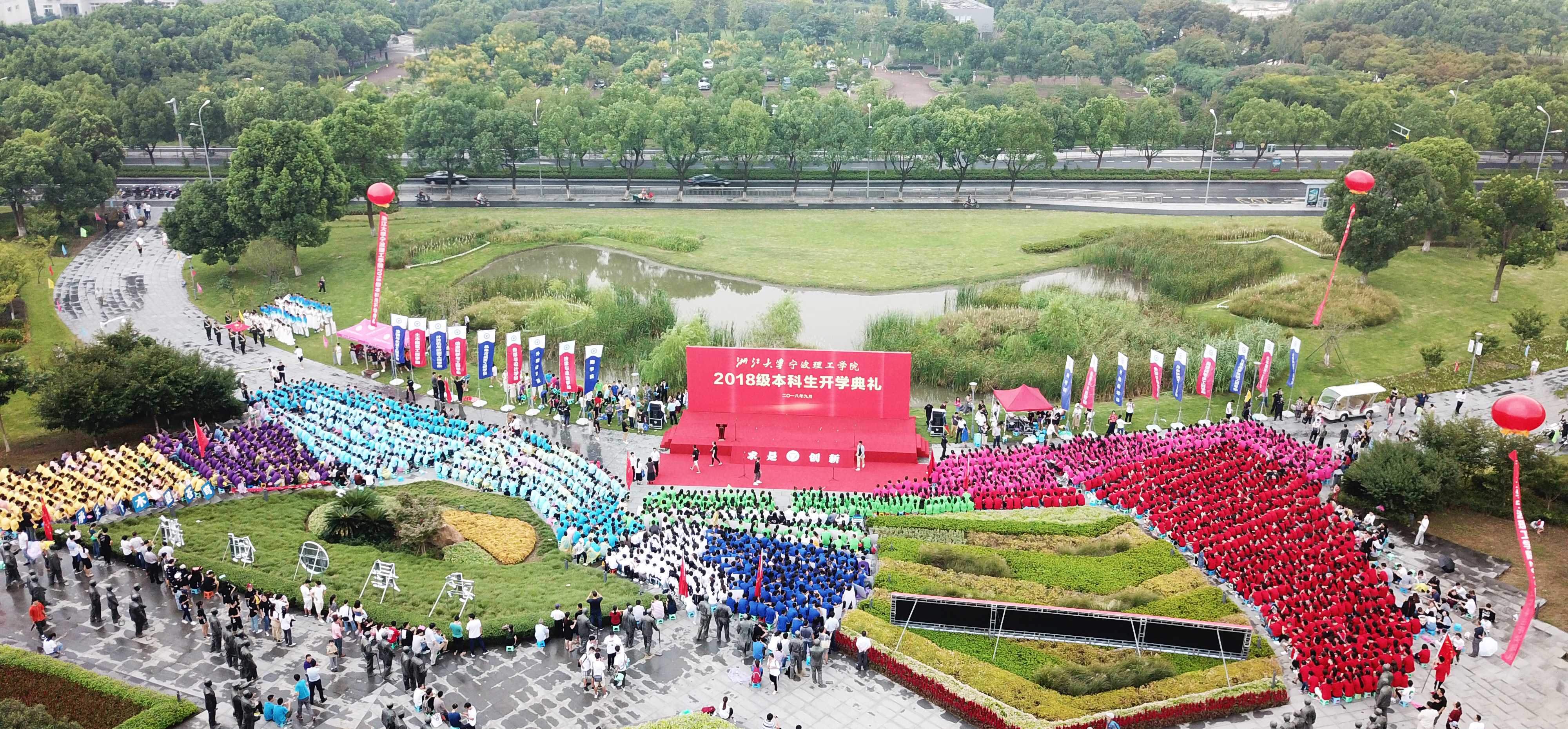 当“院士林”碰上“小萌鲜”,浙江大学宁波理工学院将开学仪式搬到院士公园