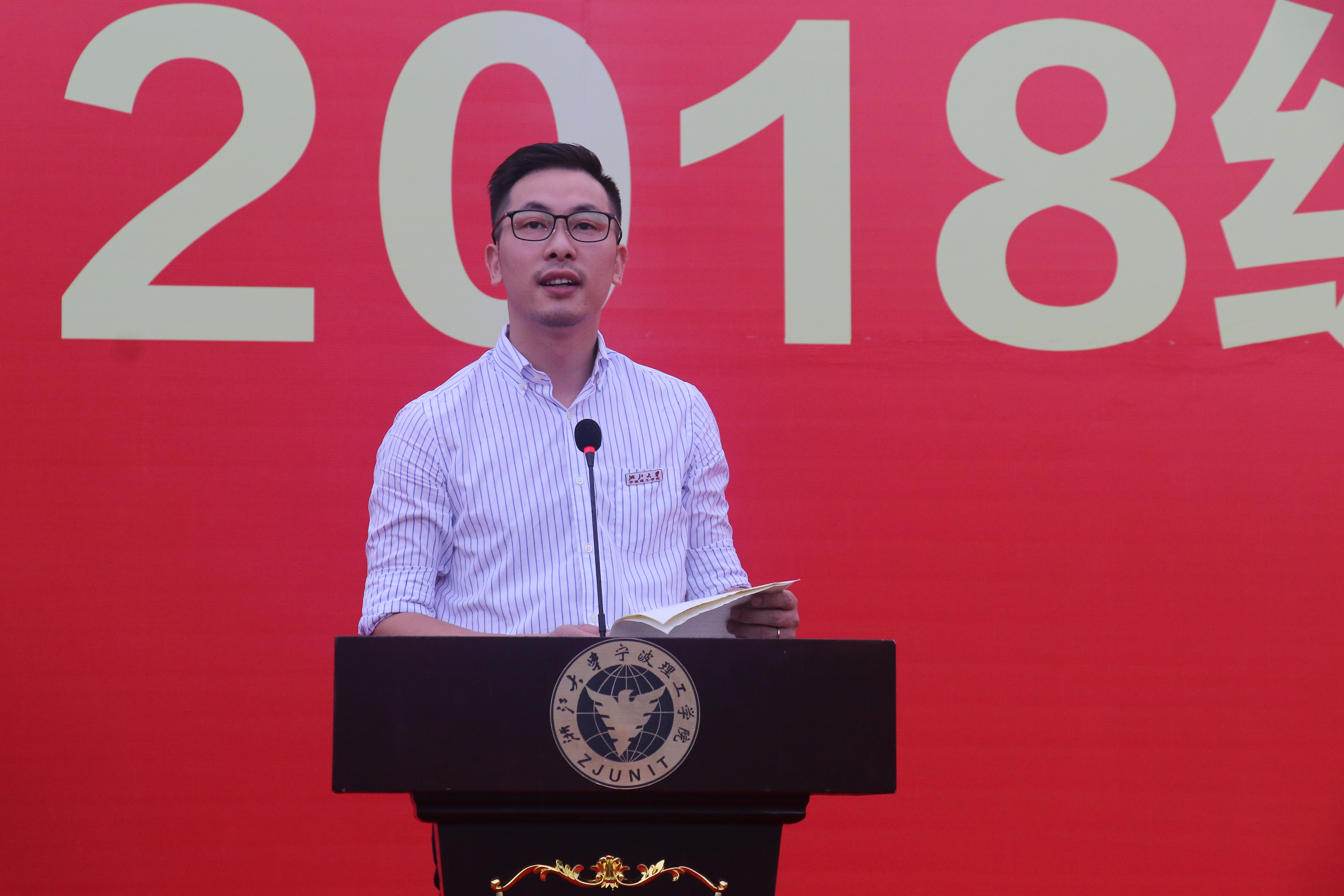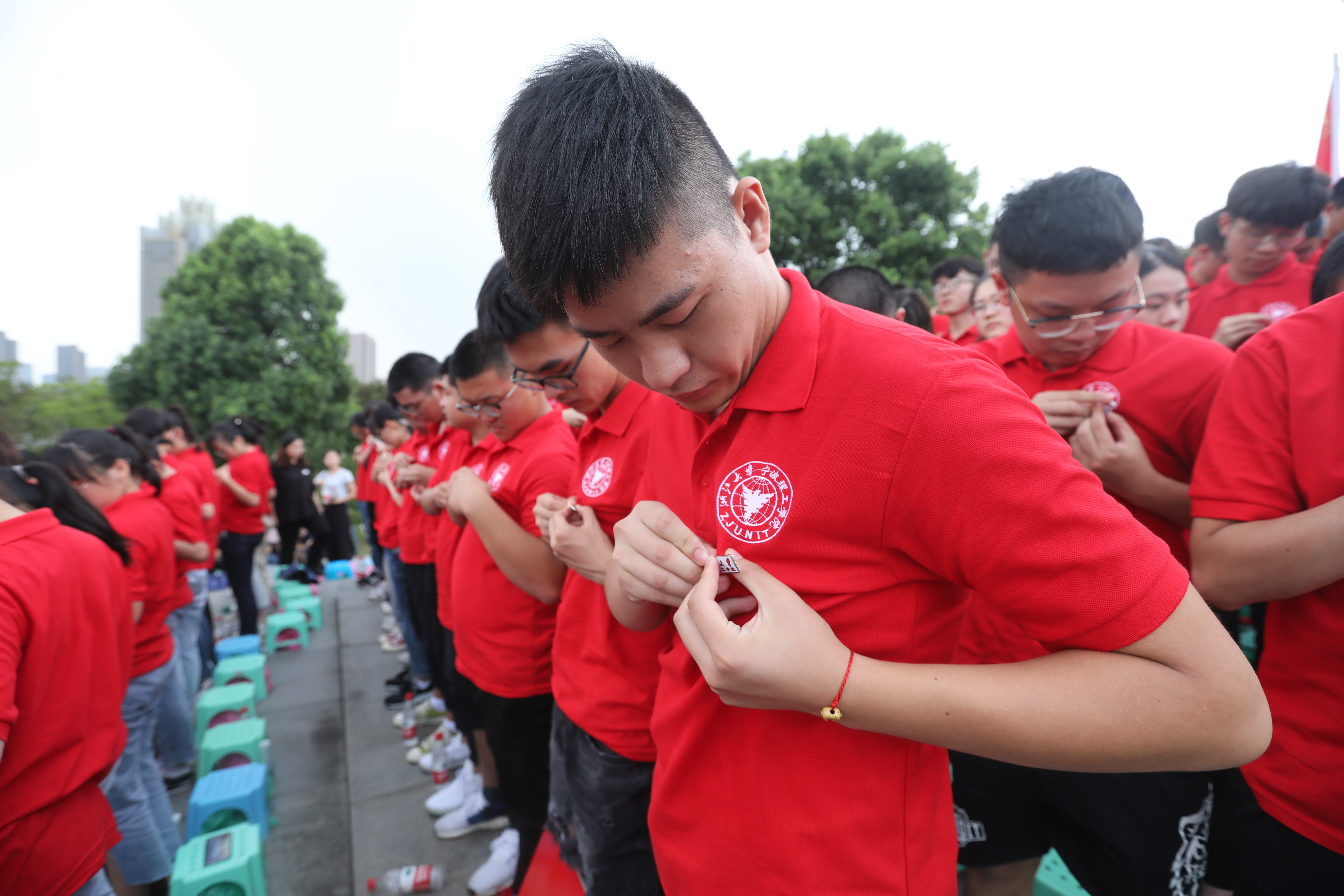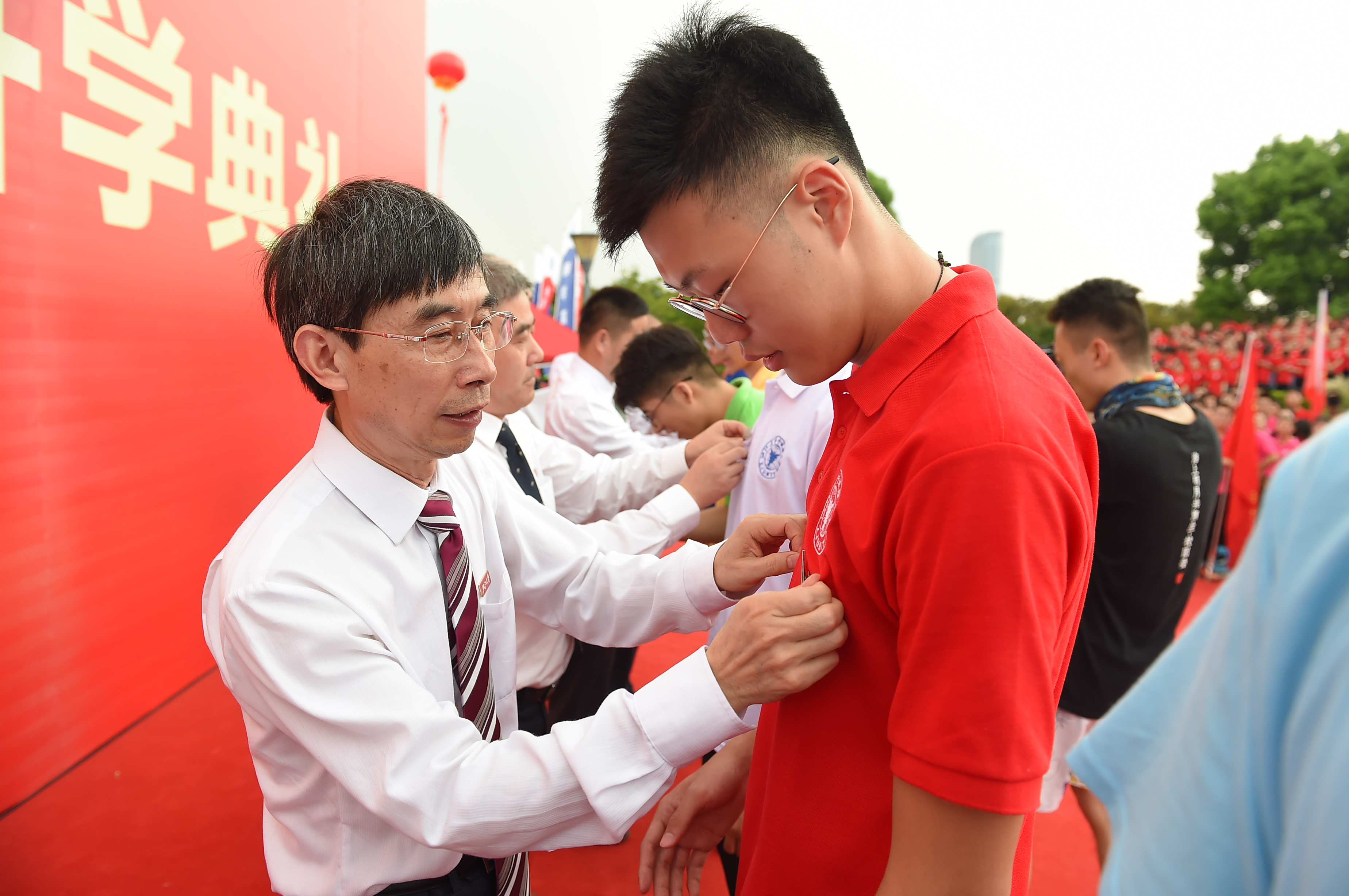 “这一枚代表着荣光的校徽,将佩戴在每一个人的胸前。从这一刻起,2018级新生正式成为开云kaiyun官网的一员!”典礼现场,在家长、老师和市民的见证下,全体新生举行佩戴校徽仪式。从一枚枚红白相间、熠熠闪光的校徽别挂在胸前起,“我迈开青春的脚步,跨进这求是的大门;在求是的土地,刻下不悔的印迹;听先贤的话语,思索人生的真谛。在浙里遇见你,共同扛起民族复兴的大旗。”新老生代表,用一首诗朗诵《浙里遇见你》,深情表达了在“浙里”习承大学之精神,弘扬求是之学风的笃定誓言。
