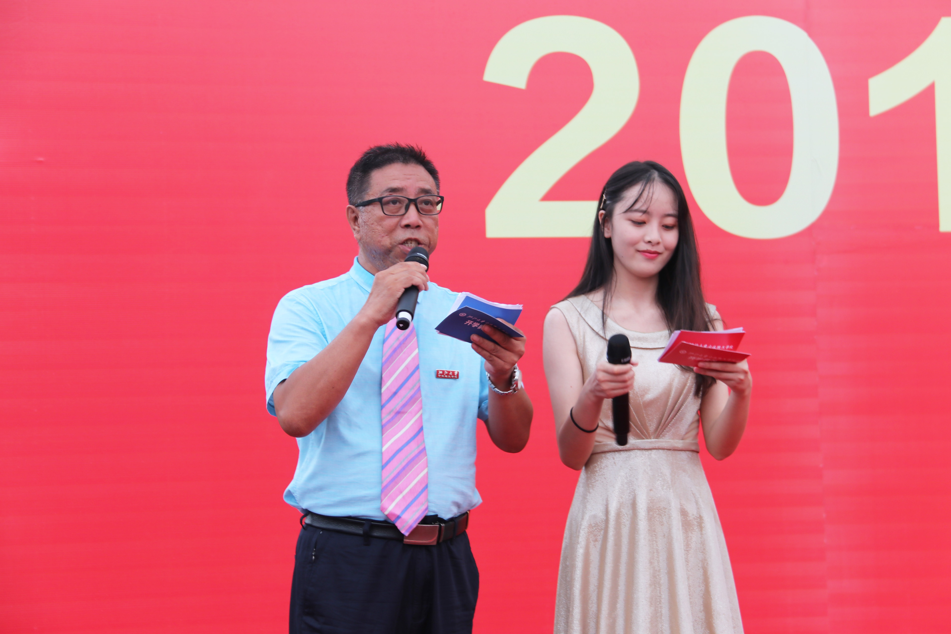 本次典礼由传媒与设计学院刘建民老师和外国语学院李瑞淑同学主持。