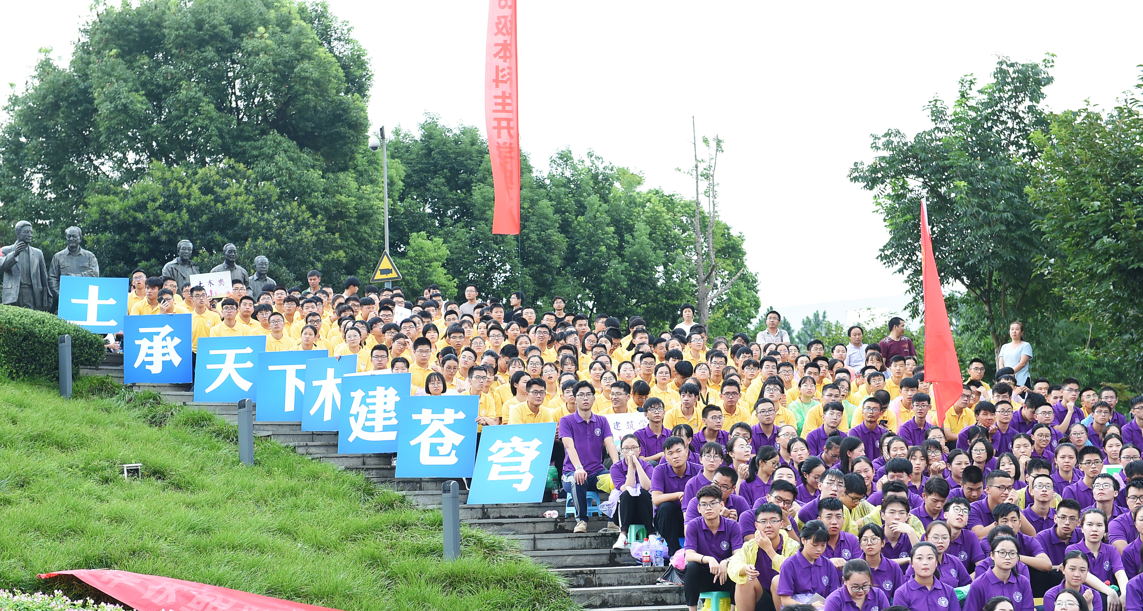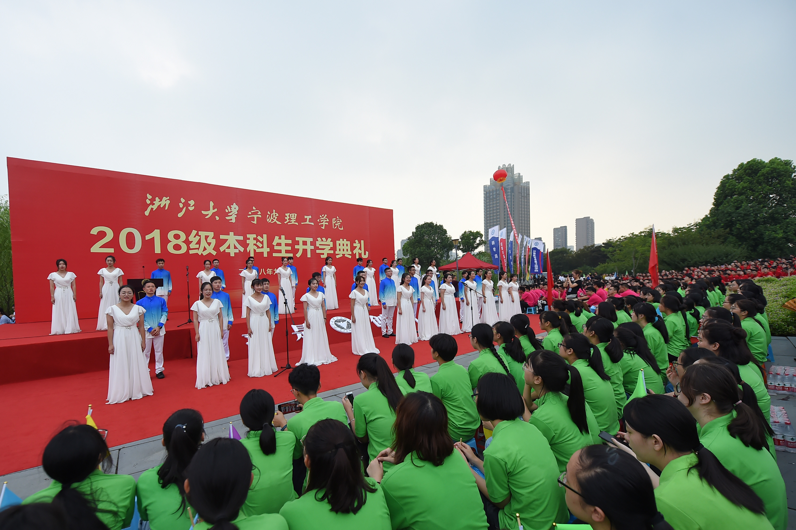“大不自多,海纳江河。……树我邦国,天下来同。”金秋的杏林金光闪耀,为院士林更添了一抹厚重的底色。9月2日下午,院士公园的上空响彻着赤诚博雅的浙江大学校歌,浙江大学宁波理工学院2018级新生开学典礼在“院士林”雕像群小广场隆重举行。2100余名新生在“院士”们的见证下迎来了神圣而庄严的时刻。