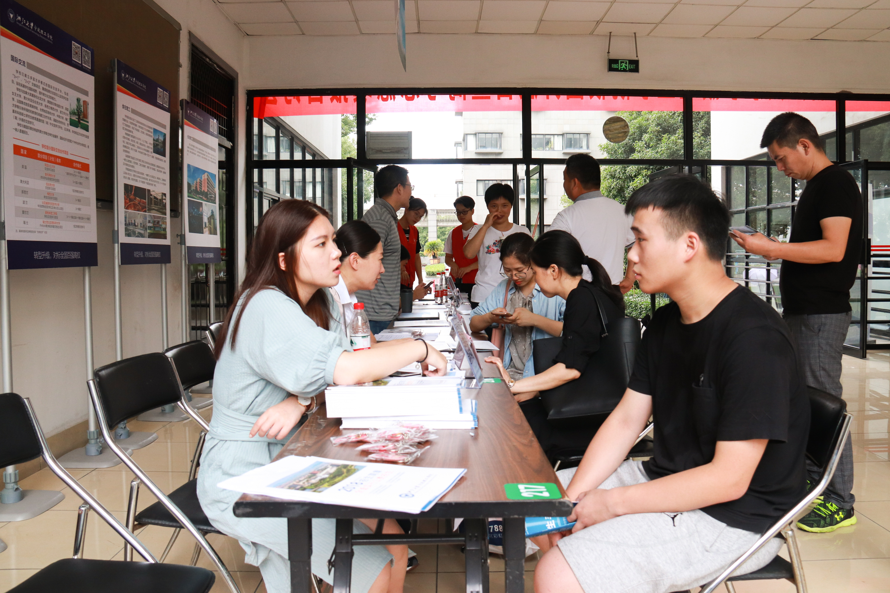 步入大厅,学校招生总咨询处映入眼帘,招生办、就业指导中心、后勤发展服务公司等联合坐镇,为考生提供招生政策、志愿填报、中外合作交流、就业升学及校园住宿餐饮等全方位咨询。9个二级学院各设一咨询处及宣讲教室,向考生和家长介绍本学院概况和特色,解读专业情况,指导考生填报适合自己的专业。
