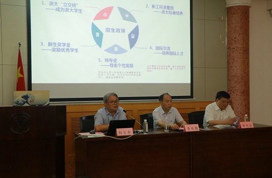 为进一步融入浙江大学宁波“五位一体”校区建设,加快推进学校转型提升,高标准打赢学校转设为公办高校的主动仗,合力做好招生宣传工作,2018年6月9日下午,学校在行政楼1101会议室召开校友理事扩大会议。学校党委书记费英勤,党委副书记黄光杰,副院长梅乐和,职能部门负责人,各学院党委(总支)负责人、各学院招生领导小组负责人,学校各地区招生组负责人,学校校友总会第二届理事会理事、各地区各学院校友分会负责人及新闻媒体校友代表参加了会议。会议通报了学校转型提升转为公办高校、公费招生的相关情况。会议由党委副书记黄光杰主持。