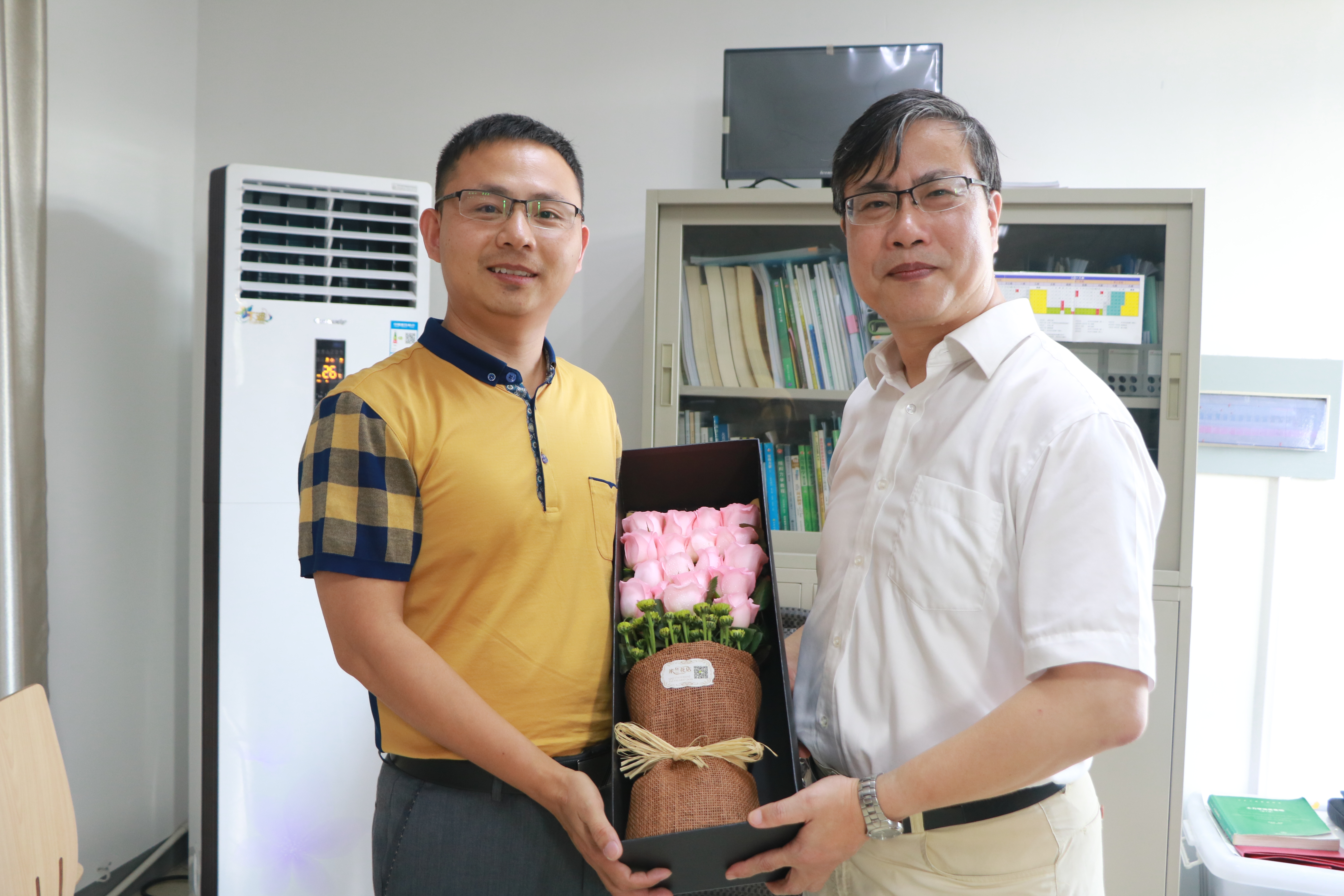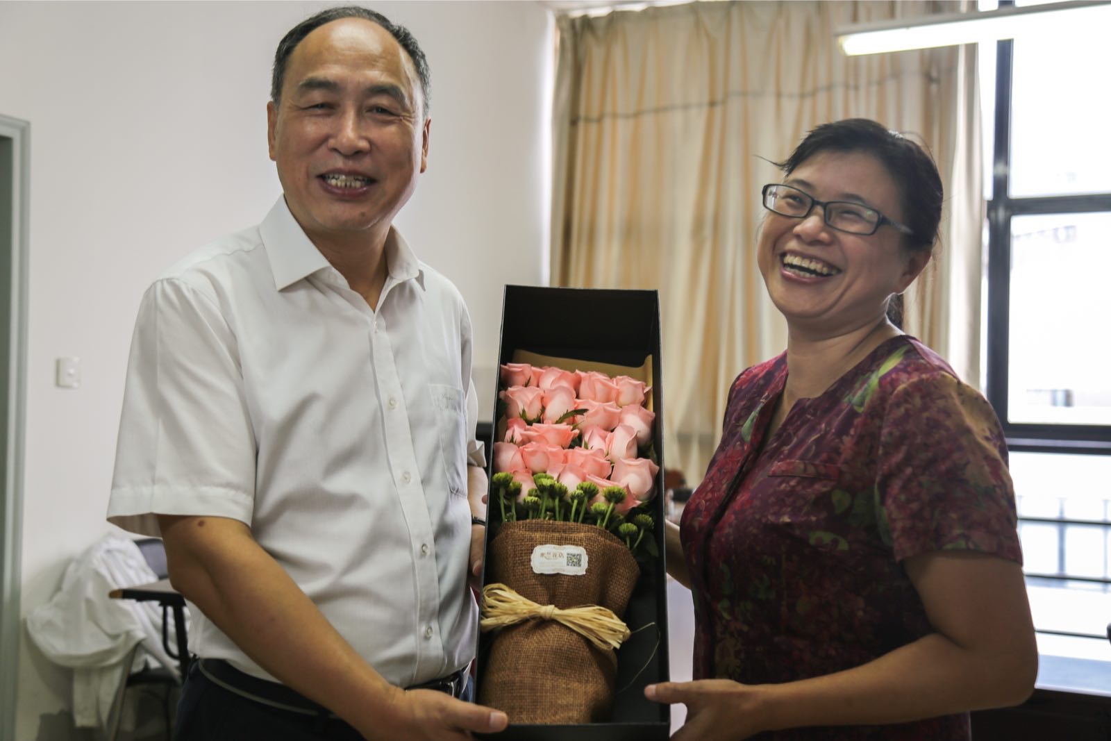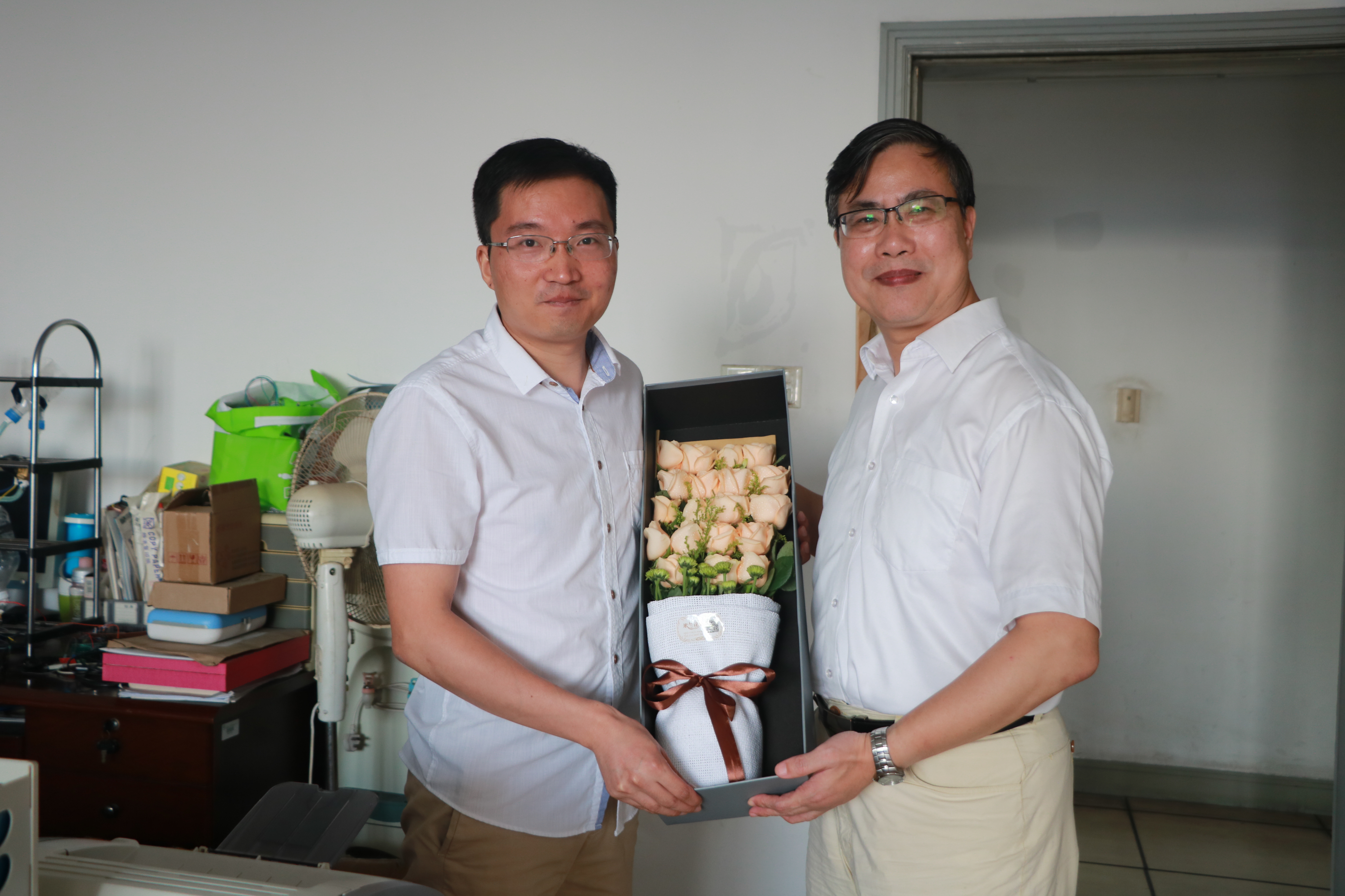 院长金伟良一行先后来到信息学院教师办公室与土建学院教师办公室看望蔡卫明老师和王忠瑾老师,并向他们送上鲜花和祝福。金院长亲切地与老师们交谈,询问他们近期工作和生活情况,并对他们在新学年的工作提出了希望。