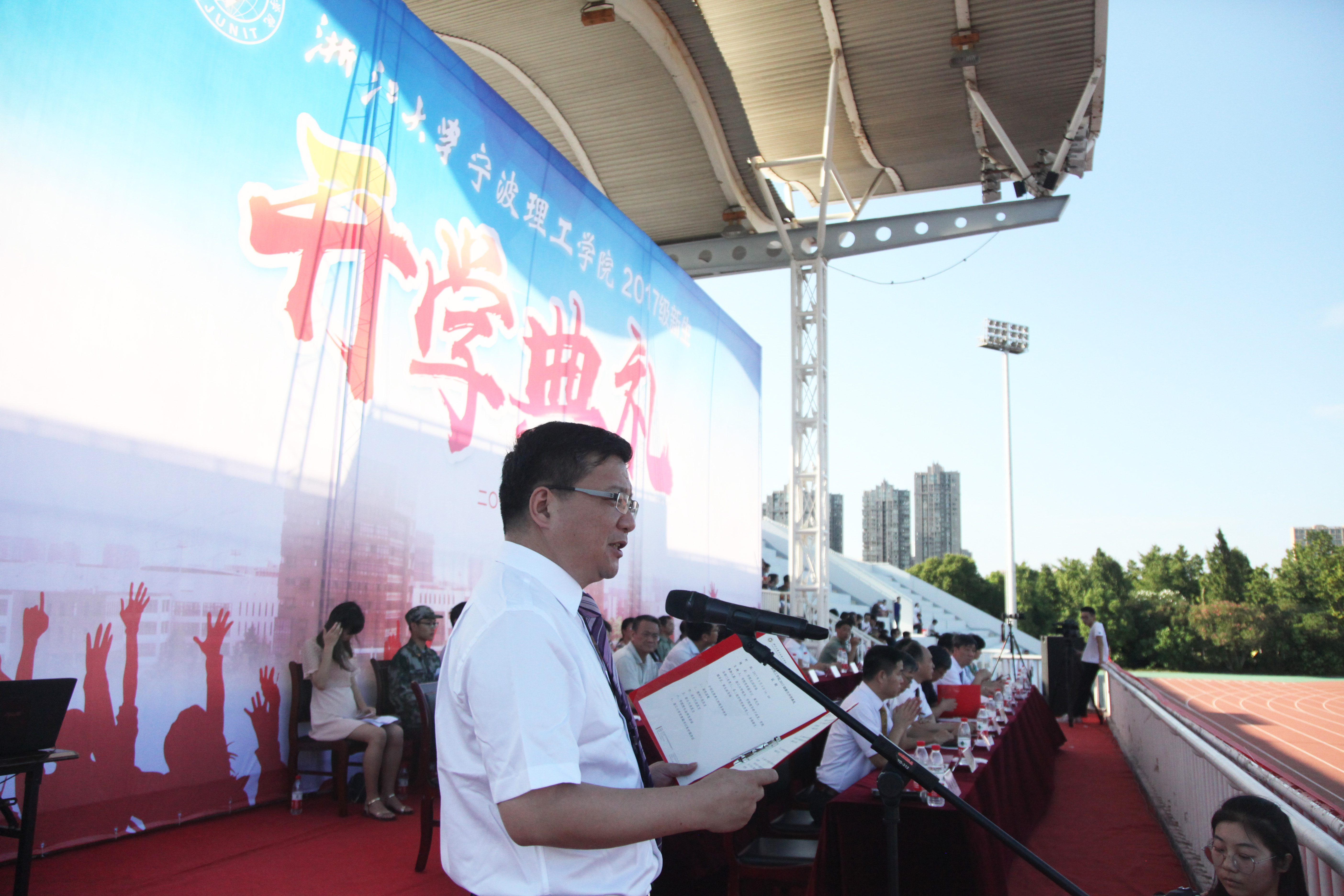9月4日,学校2017级新生开学典礼在北田径场召开。浙江大学党委副书记朱世强、校长助理胡征宇、学工部部长邬小撑,开云领导金伟良、费英勤、俞春鸣、杨建刚、陈小兰、毛才盛、梅乐和出席了典礼。新生家长代表和2017级全体新生参加了典礼。典礼由开云党委副书记黄光杰主持。