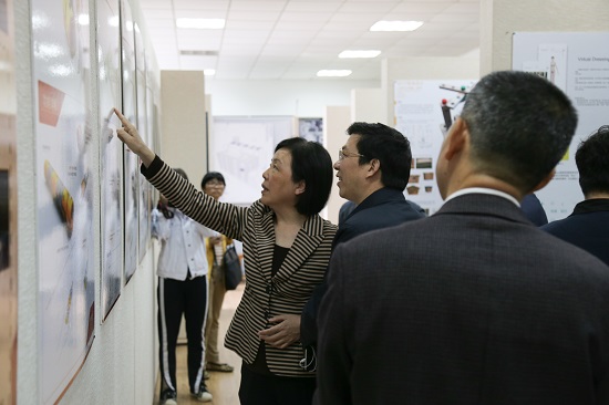 在考察了工业设计展厅和海洋装备实验室后,市人大领导和校方人员进行了座谈交流。费英勤书记代表学校就近几年学校发展情况作汇报,机能学院陈光明教授汇报了特色学院的建设情况,生化学院方征平教授就学校办学过程中存在的体制机制约束等困难谈了自己的看法,杨建刚副院长结合浙江大学学科调整溢出、“双一流”建设和市校双方五位一体校区建设,汇报了学校发展的机遇与挑战。