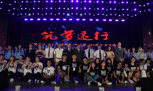 浙江大学副校长罗卫东,宁波市委教育工委副书记、市教育局副局长王晓勇,台湾高校参访团来宾和学校领导出席了晚会。学校各相关部门、各二级学院负责人,部分教师,返校校友以及全体2016级新生观看了晚会。