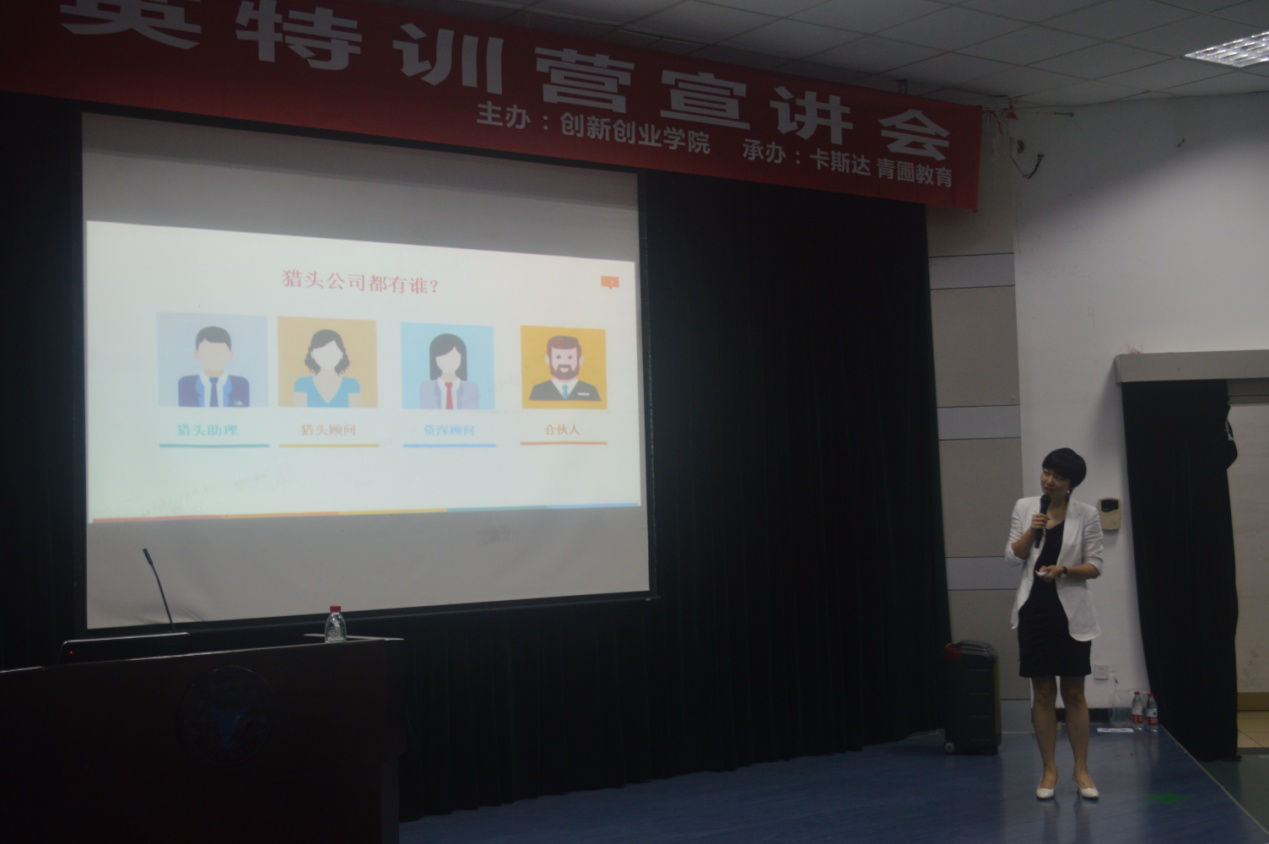 6月2日晚,由学校创新创业学院、宁波卡斯达企业管理顾问有限公司、青圃教育联合打造的“HR精英特训营”宣讲会在NF103举行。此项目是学校、企业探索人才培养的新模式,通过职前训练营的形式,搭建起社会、高校人才输送的高速通道,以企业反馈高校的公益模式,培养一批具有创业精神、具备专业素养、有志于在HR领域开拓事业的精英。