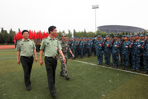 9月13日下午,开云2014年学生军训阅兵暨总结大会于北田径场举行。浙江大学党委副书记、军训师政委严建华,学院党委书记费英勤,副院长杨建刚,军训团政委、党委副书记黄光杰,浙江大学军训师政治部主任陈君芳,军训团团长朱佳华,学院军训团负责人,以及各部门、单位负责人、全体辅导员、班导师等参加了大会。大会由军训团副团长陶向阳主持。