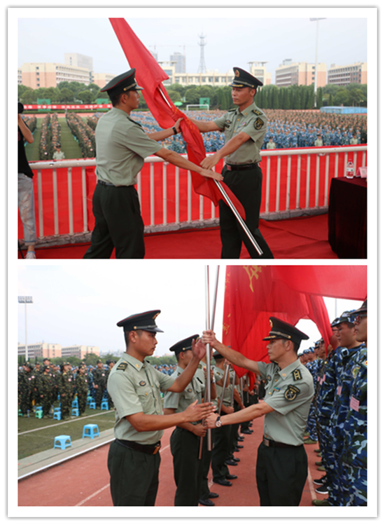 伴随着庄严的国歌,军训动员大会正式拉开了序幕。大会首先由军训师副师长李文腾宣读军训师命令,命令对军训团各职位进行任命。随后,进行了团旗授予仪式和连旗授予仪式。