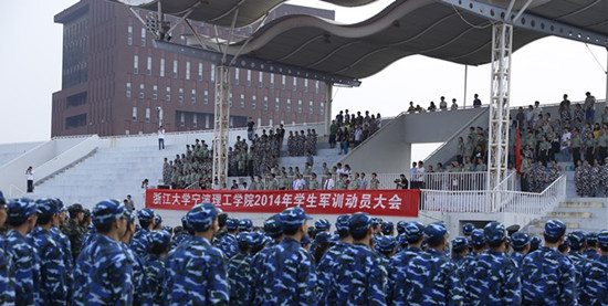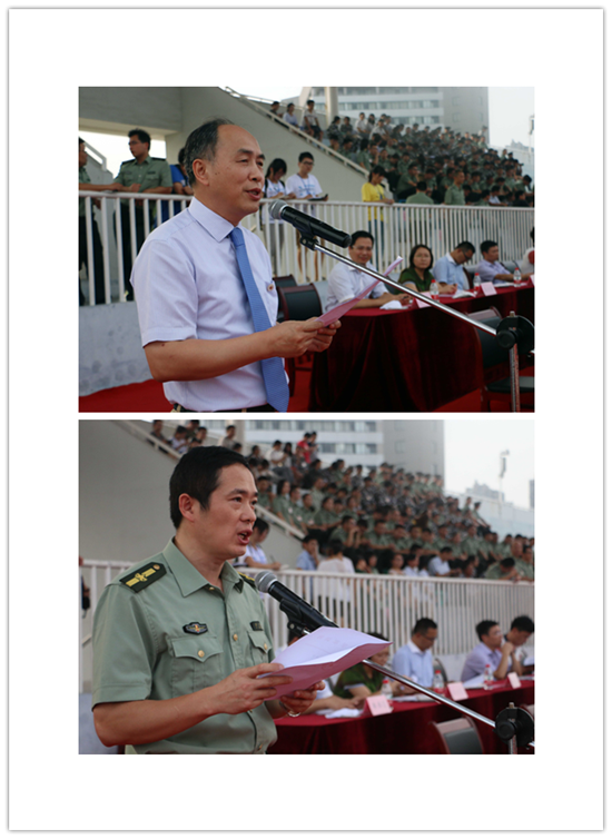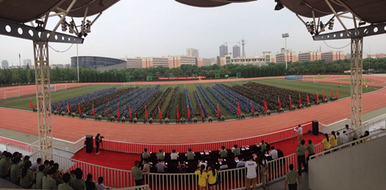 9月1日下午4点30分,3000余名军训学员齐聚学校北操场。学校2014年学生军训动员大会在北田径场召开。学校党委副书记、军训团政委黄光杰,后勤保卫部部长、军训团副团长陶向阳、军训团副政委周树红,学校党委书记费英勤,军训团团长朱佳华,承训部队副政委曹阿超等领导出席了大会。本次大会由军训团副政委陆亚女主持。