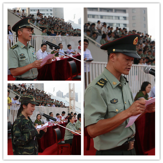 2014级新生代表方艺蒙代表全体新生向教官、老师做出了自己的保证:“虽然我们穿得是旧鞋,但是仍要走刻苦努力的老路”。一连连长黄亮代表全体承训教官发表了感言:“我们会与同学们同娱乐,同刻苦,同提高,争取能和同学们建立深厚的友谊。我们会以身作则先严格要求自己,让同学们信服。”