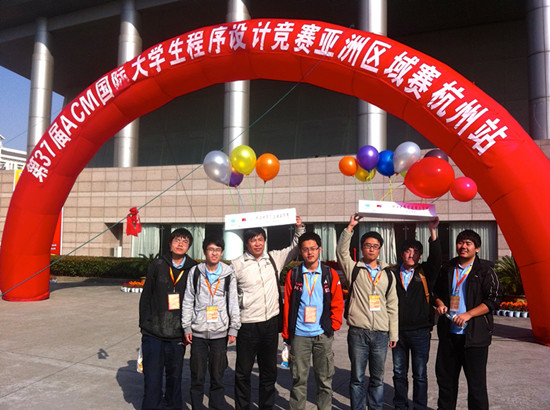 2012年11月4日,从杭州传来喜讯,浙江大学宁波理工学院信息学院学生在第37届ACM国际大学生程序设计竞赛亚洲区杭州站的比赛中获得佳绩,由李翔威(计算机093班)、张慧东(计算机091班)、邵律(计算机102班)组成的FBH队,力压复旦大学、上海交通大学、浙江大学等众多名校的高手,夺得金牌,并取得第37届ACM国际大学生程序设计竞赛全球总决赛的资格。另外,由叶川(计算机091班)、郑嘉涛(计算机102班)、邵逸(电信102班)组成的POAD队获得铜牌。
