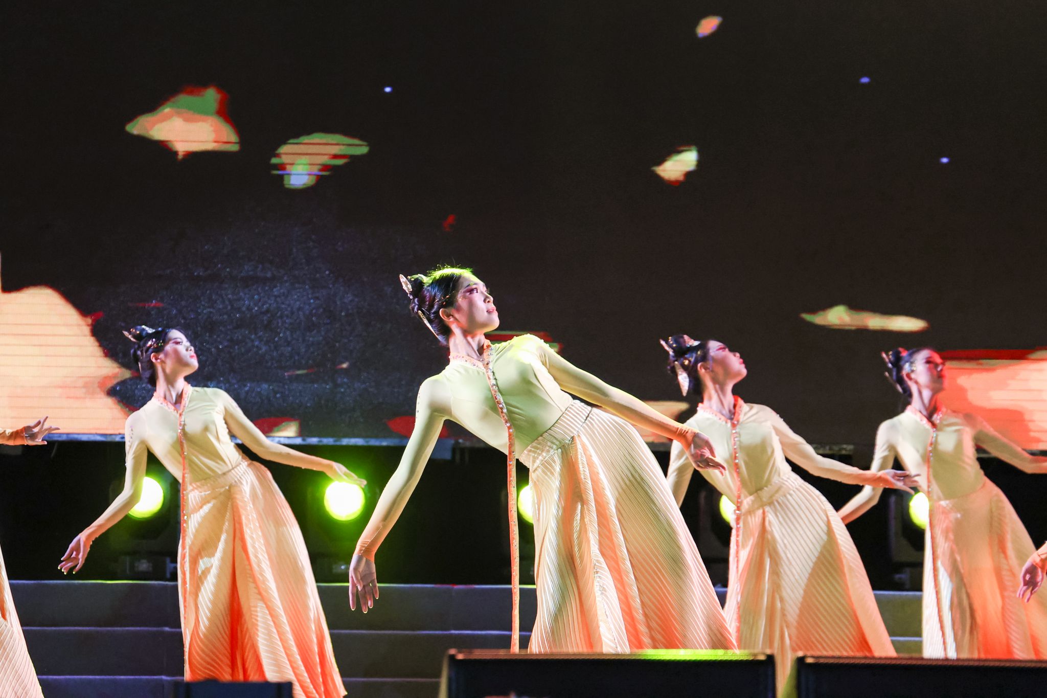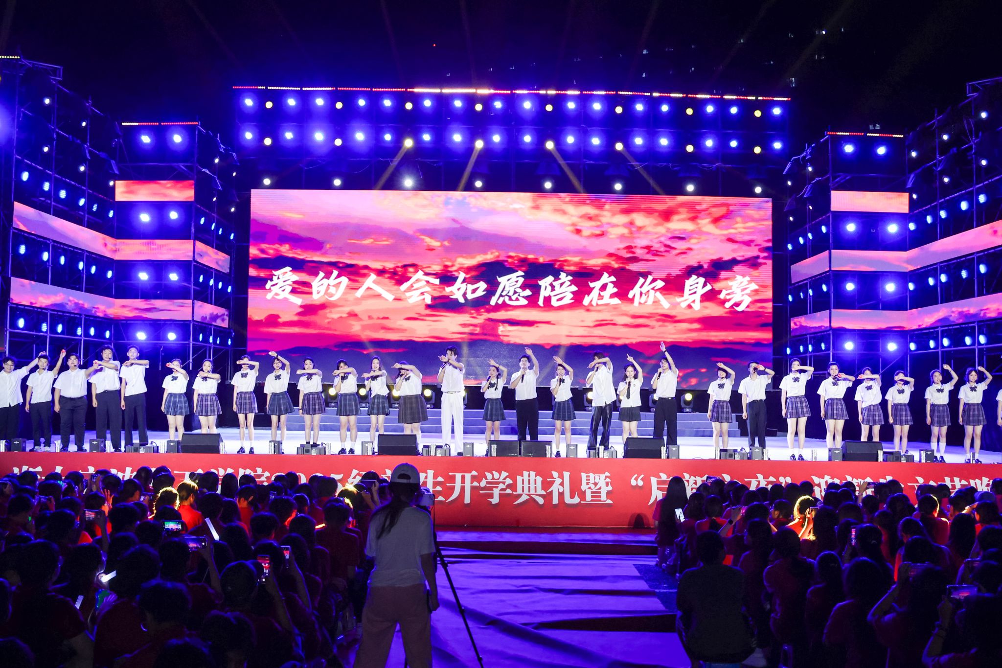 随着烟花绽放,伴随着在场观众的热烈欢呼声,“启新之夜”迎新生晚会华彩上演。原创歌曲《东临大海》以歌伴舞结合民乐器乐,展现青春活力,表演者歌声悠扬,舞步蹁跹,在乐与舞的对话中,同学们无不沉醉其中。随后,现代舞《生长》直击心灵,舞者们用优美的姿态展现人生漫漫长路,让在场师生身临其境,将大家带入到自然的生命里,给予新生向下扎根、向上生长的勇气。《一荤一素》《改变自己》《我是如此相信》《海芋恋》等不同风格的歌曲串烧则瞬间将温情的舞台点燃,表演者们火力全开,积极互动,台下随着欢快的节奏舞动喝彩,洋溢新青年的朝气蓬勃。刚柔并济的武术表演震撼全场,剑舞风云动,拳出天地惊,可谓行云流水。融合古琴与朗诵的《定风波》励志而不失雅致,女子群舞《从来银杏不负秋》温婉而不失气势,合唱互动《不要慌太阳下山还有月光》温馨而不失活力,群舞《不屈的脊梁》则更是优美而不失力量。精彩节目轮番登场,为观众带来了一场视听盛宴,掌声与欢呼声此起彼伏。晚会尾声,全场齐声高唱《我的祖国》,清澈的美声与恢弘的合唱交织,激荡起深深的爱国情怀与集体荣誉感,为这个充满希望与感动的夜晚画上了圆满的句号。