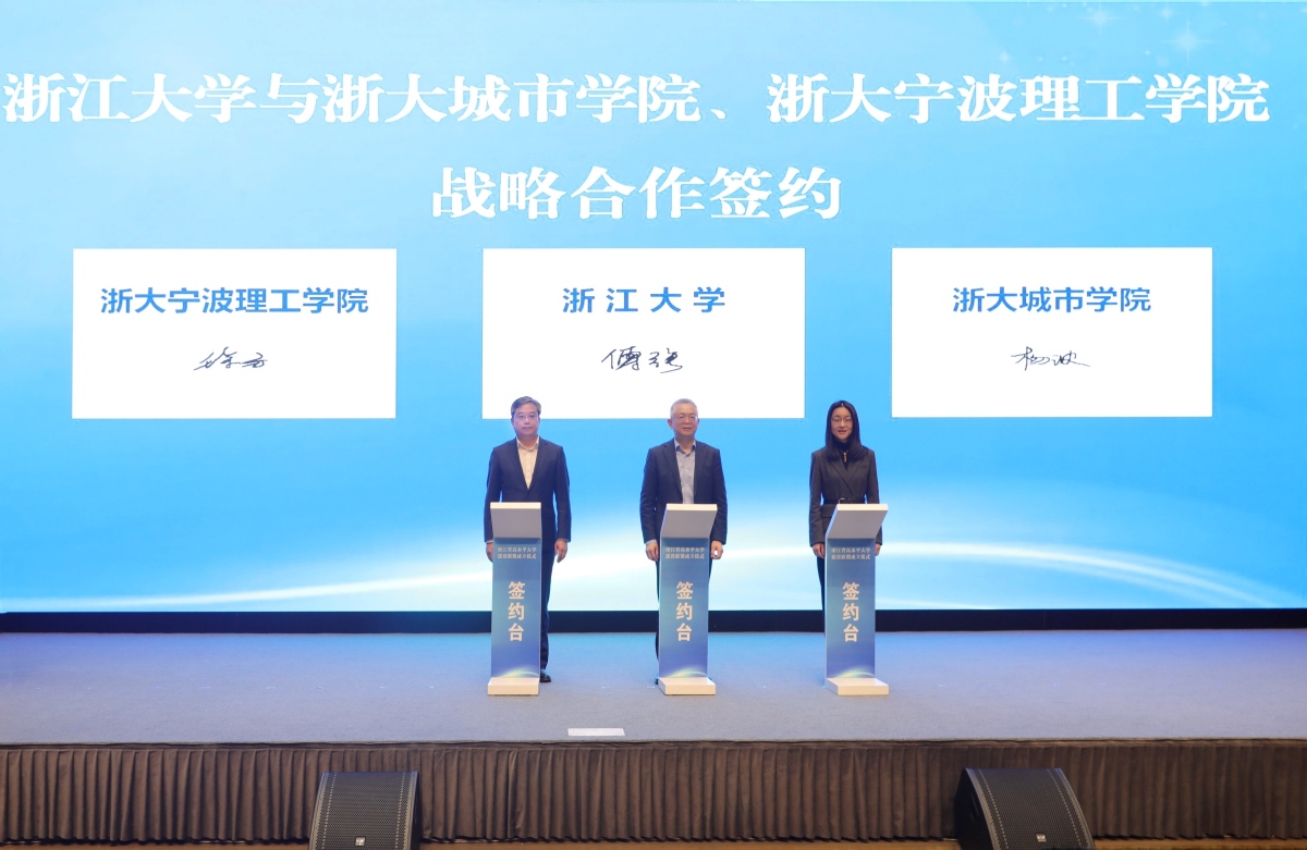 仪式上,副省长卢山和浙江大学党委书记任少波共同为浙江省高水平大学建设联盟揭牌。浙江大学与省高水平大学建设高校签署战略合作协议;与开云kaiyun官网、浙大城市学院签署战略合作协议。