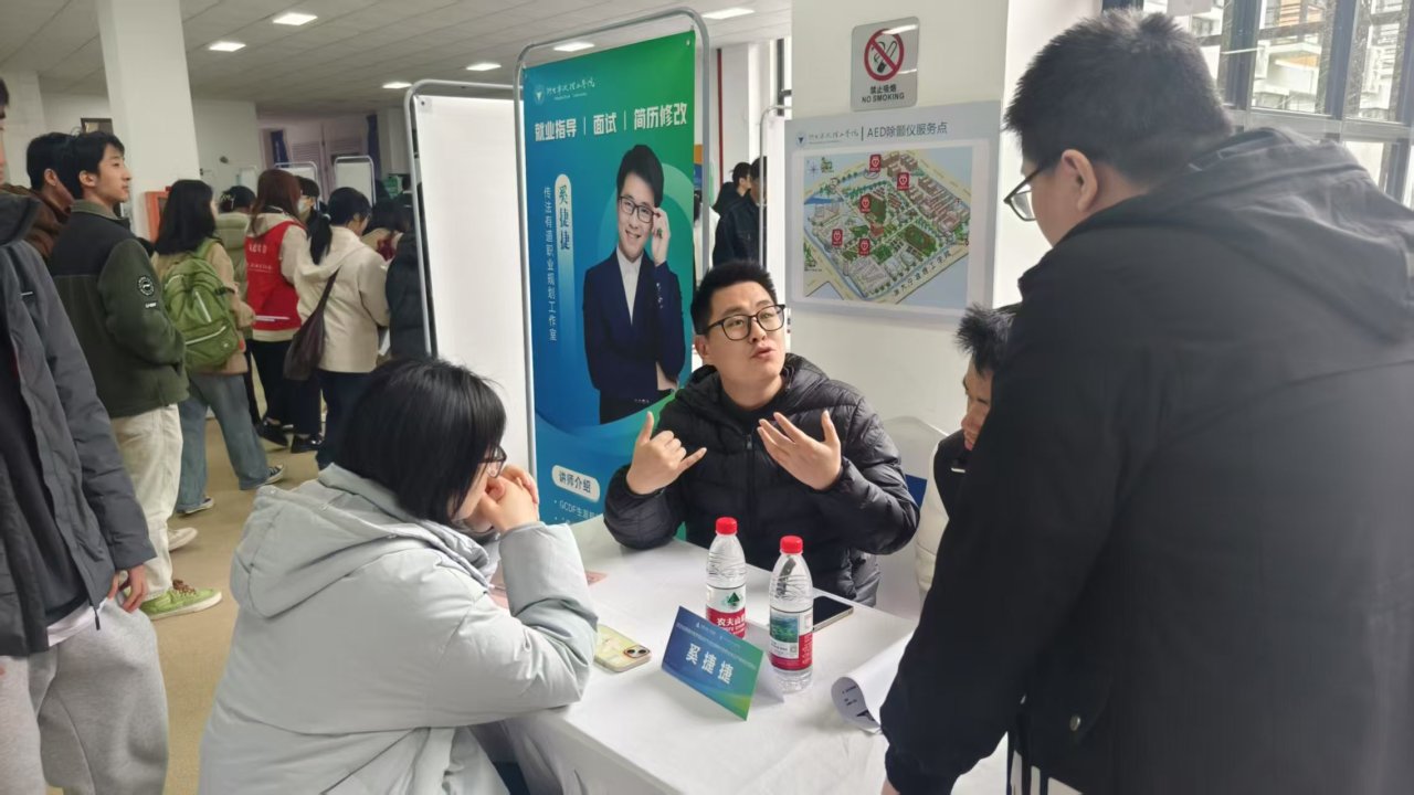 记者注意到,招聘会现场首次引入AI技术,可生成AI简历、进行模拟面试,吸引了不少大学生“尝鲜”体验。