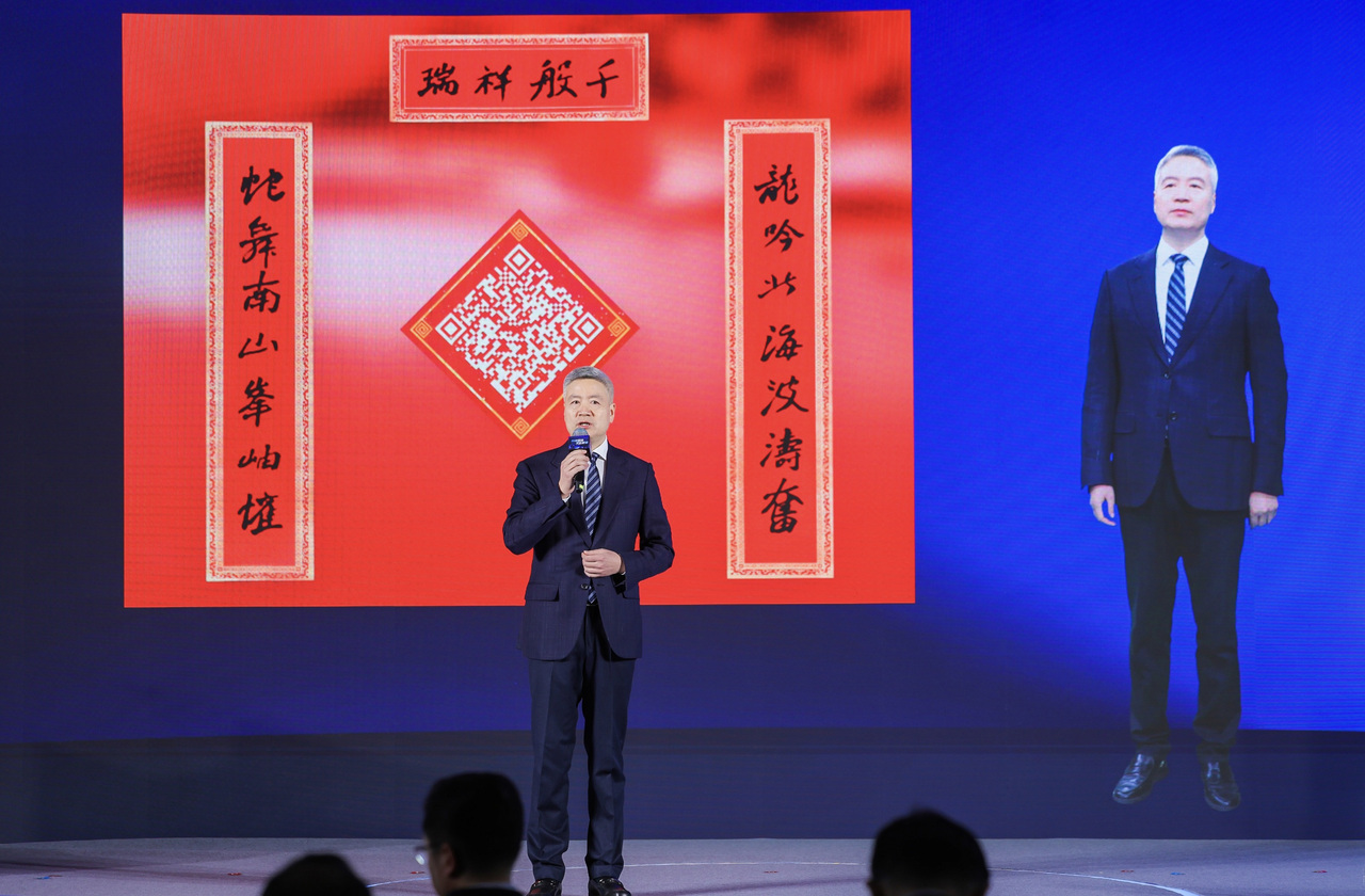 科幻小说中神秘“技术奇点”正从想象走入现实。大会现场,浙江日报报业集团社长、党委书记姜军携数智人“老姜”亮相致辞。在致辞上,数智人“老姜”不仅用英语、法语、西班牙语等多门外语向在场来宾表示欢迎,还与姜军社长展开互动,写下了一副春联送给与会嘉宾。