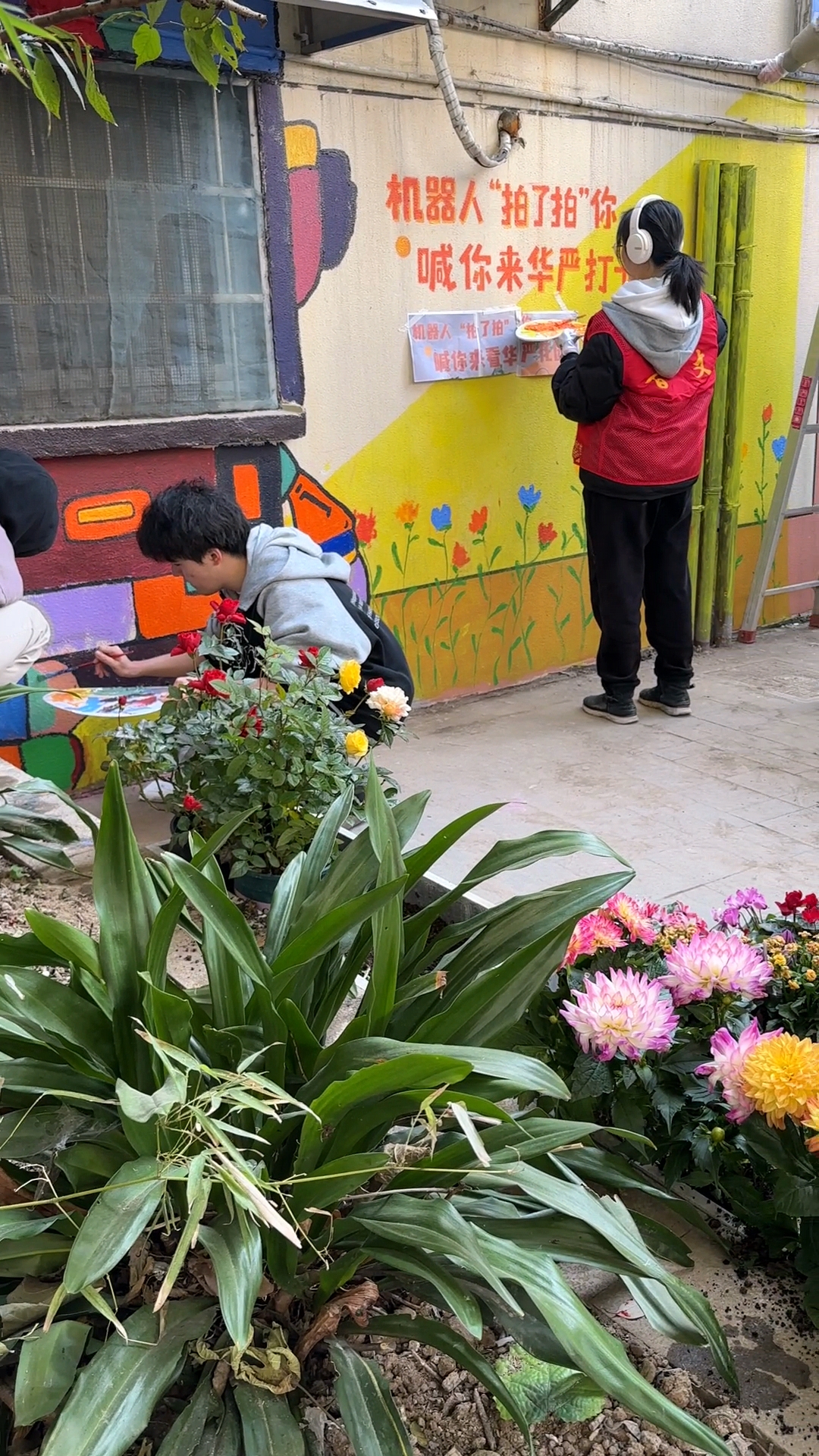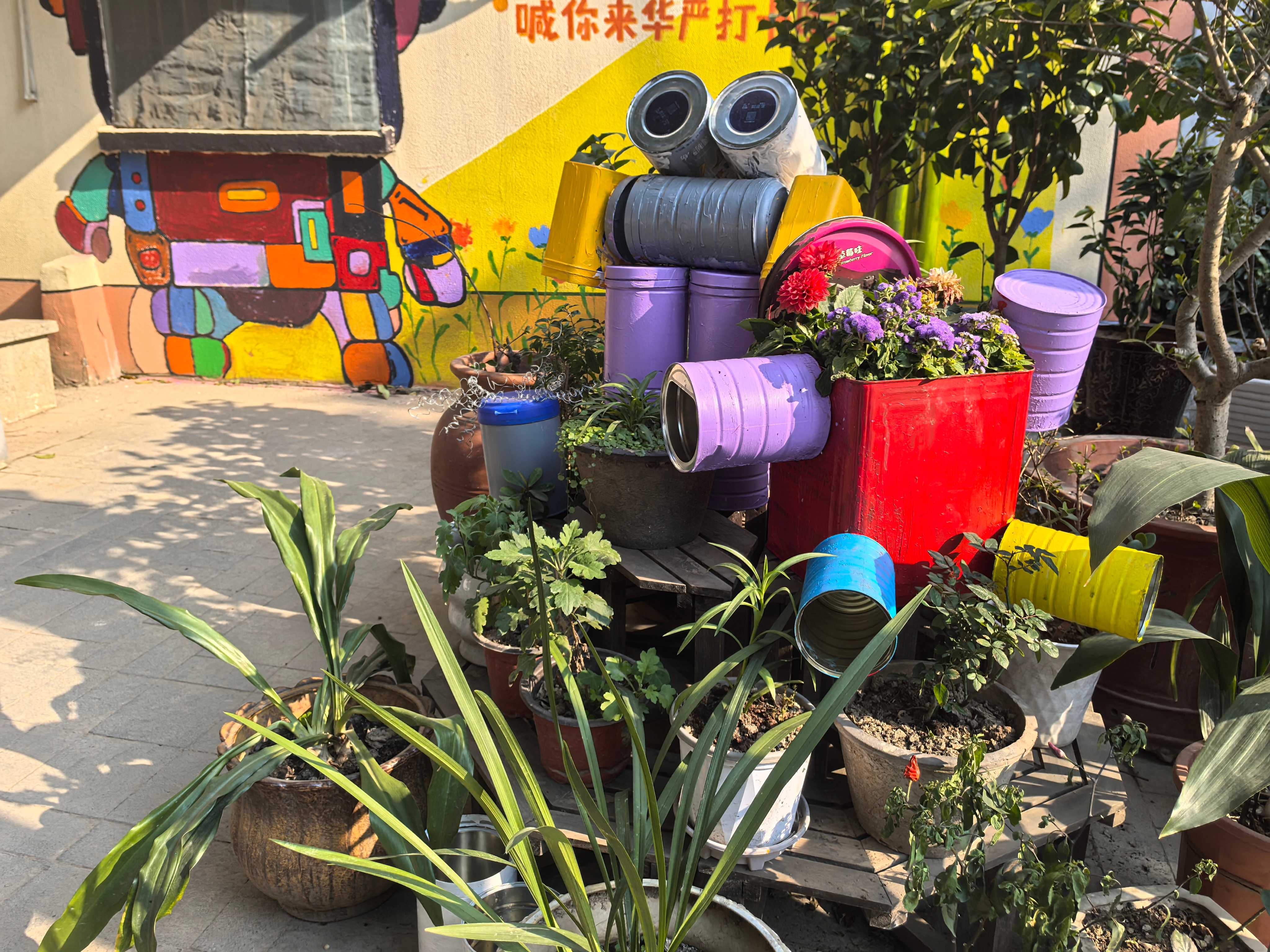 华严社区与高校合作,用废旧瓶罐打造“容器花园”,成为新晋网红打卡点。