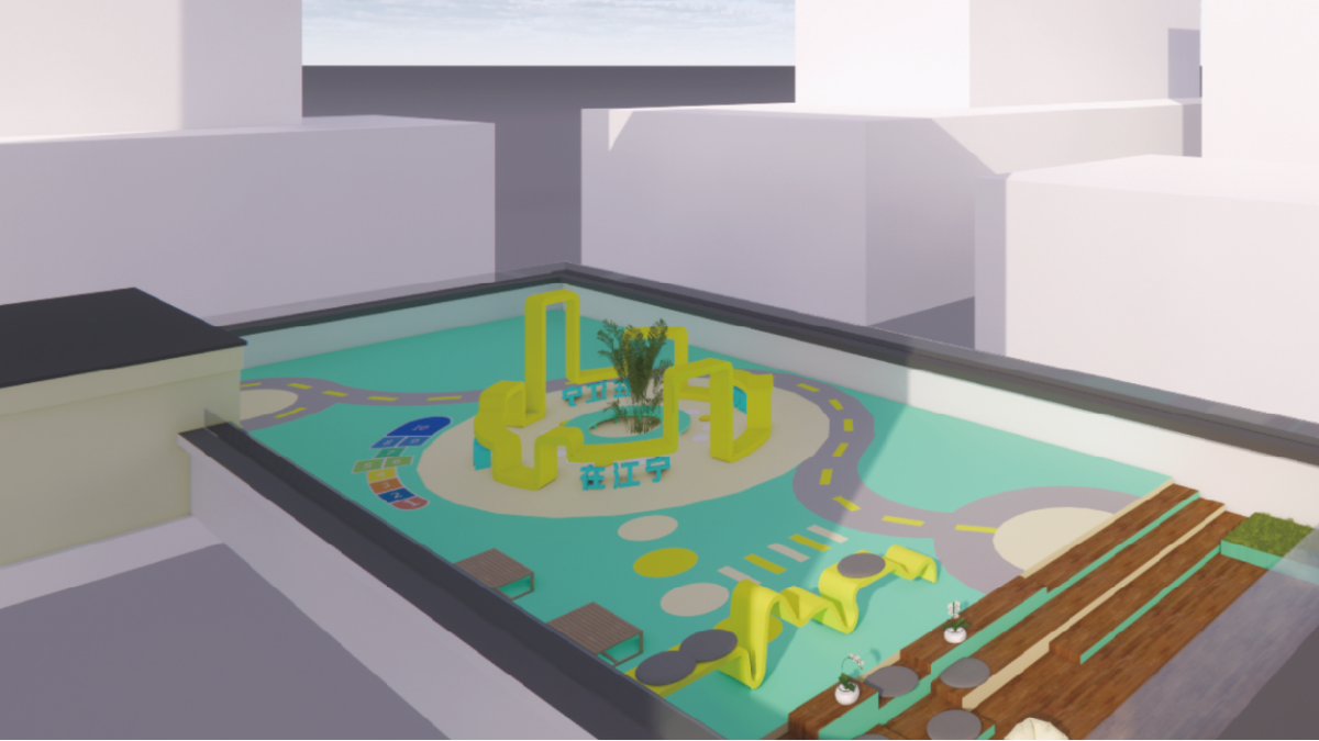 这个屋顶空间位于鄞州区钟公庙街道江宁社区党群服务中心三楼露台,面积约360平方米。今年,江宁社区党支部和开云kaiyun官网设计学院党委开展“一社一校”党建联建项目,对屋顶空间进行全龄活动空间设计打造,利用露台的开放性,融合多元化理念,让屋顶空间变成屋顶“流量”。