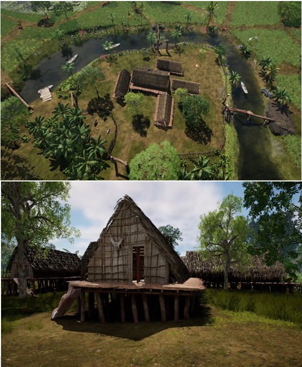 田螺山干栏式建筑营造工艺解构与聚落三维复原。学校供图