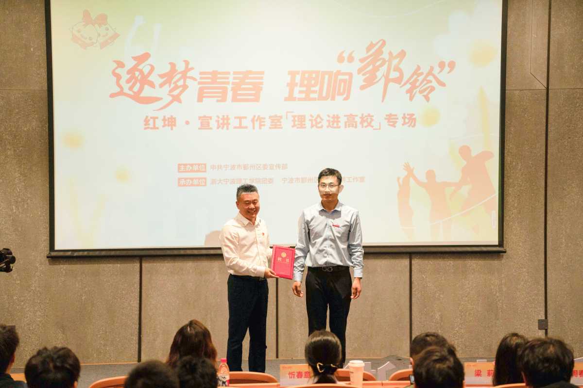5月10日下午,“逐梦青春 理响‘鄞铃’”红坤·宣讲工作室理论进高校专场在开云kaiyun官网举行。红坤宣讲工作室宣讲员们以音乐、歌曲、快板、小品等载体,走到大学生中,以别开生面的形式,展现了鄞州“80后”“90后”和“00后”宣讲铁军的风采,推动创新理论“飞入寻常百姓家”。