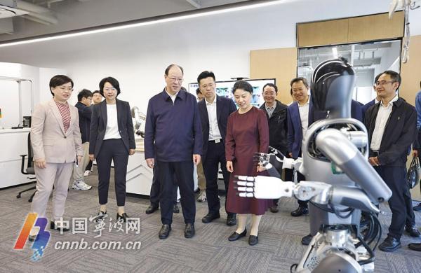 在浙江人形机器人创新中心,彭佳学考察实验室,观摩人形机器人功能演示,了解平台打造、技术研发、人才引进等情况,并与科技工作者互动交流。彭佳学强调,要瞄准机器人等前沿领域,搭建全市性协同协作平台,完善重大科研项目攻坚机制,打造以企业为主体、以产品为导向的创新联合体,坚持“链长+链主”高效联动、大中小企业融通发展,加速推动创新链产业链资金链人才链深度融合,有效打通从0到1、从1到100的堵点卡点。