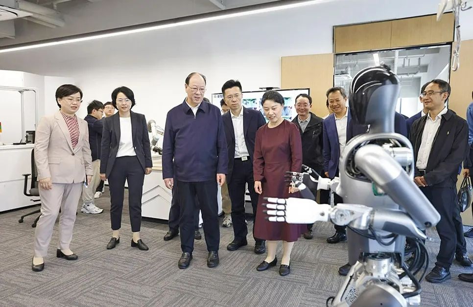 在浙江人形机器人创新中心,彭佳学考察实验室,观摩人形机器人功能演示,了解平台打造、技术研发、人才引进等情况,并与科技工作者互动交流。彭佳学强调,要瞄准机器人等前沿领域,搭建全市性协同协作平台,完善重大科研项目攻坚机制,打造以企业为主体、以产品为导向的创新联合体,坚持“链长+链主”高效联动、大中小企业融通发展,加速推动创新链产业链资金链人才链深度融合,有效打通从0到1、从1到100的堵点卡点。