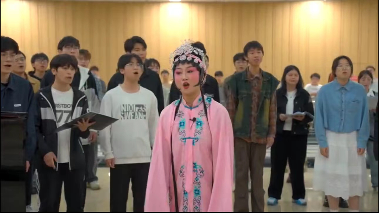 随着优雅的钢琴声响起,“书乐齐鸣”快闪活动爱沙尼亚歌曲《Valgust》中拉开了帷幕。紧接着,学生们合唱了古典民歌《敕勒歌》和《山中月》,其中昆曲戏腔的加入,使得歌曲空灵与深邃。活动最后,学生们齐声合唱《我和我的祖国》。