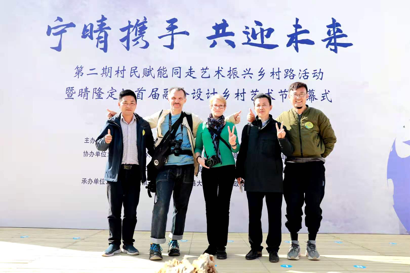 之后,在姜红升的带领下,玛格达莱娜夫妇来到宁海葛家村。此时,中国人民大学艺术学院副教授丛志强,带着他的学生,还有浙大宁理的师生在这里开展“艺术振兴乡村”的试点活动。