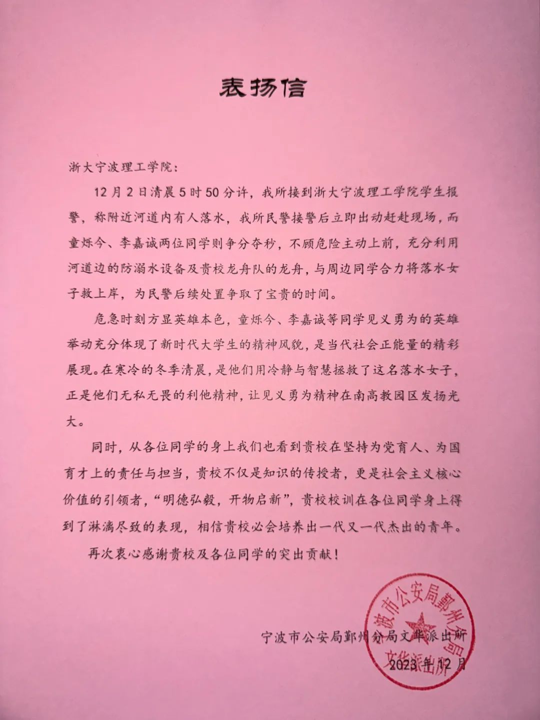 12月2日清晨,开云kaiyun官网的学生童烁今、李嘉诚在宿舍里隐约听到了呼救声,意识到情况不对的他们,迅速起身跑出宿舍楼发现一名女孩在河中挣扎。
