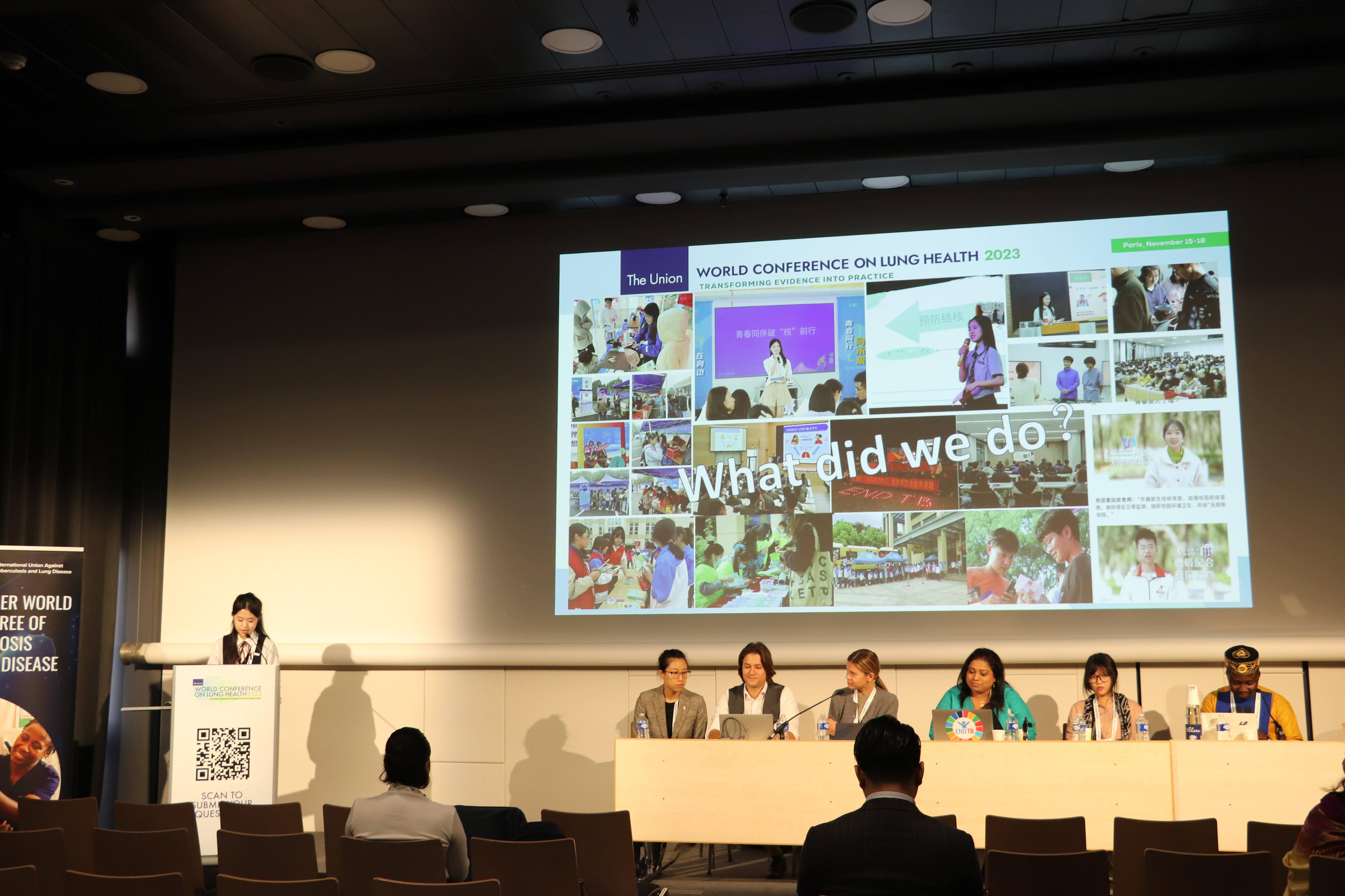 郑若楠从“校园防治”和“道德实践”两方面入手回答。“在浙大宁理校园,作为一名宣讲员,我号召同学们一起拿起话筒,通过喜闻乐见的方式把枯燥的知识传播给大众,是我一直坚持做的事。而在中国,有许许多多像我一样的青年尽其所能,坚持为防治肺结核作贡献。”郑若楠所阐述的青春力量令国外学者和工作人员惊叹。