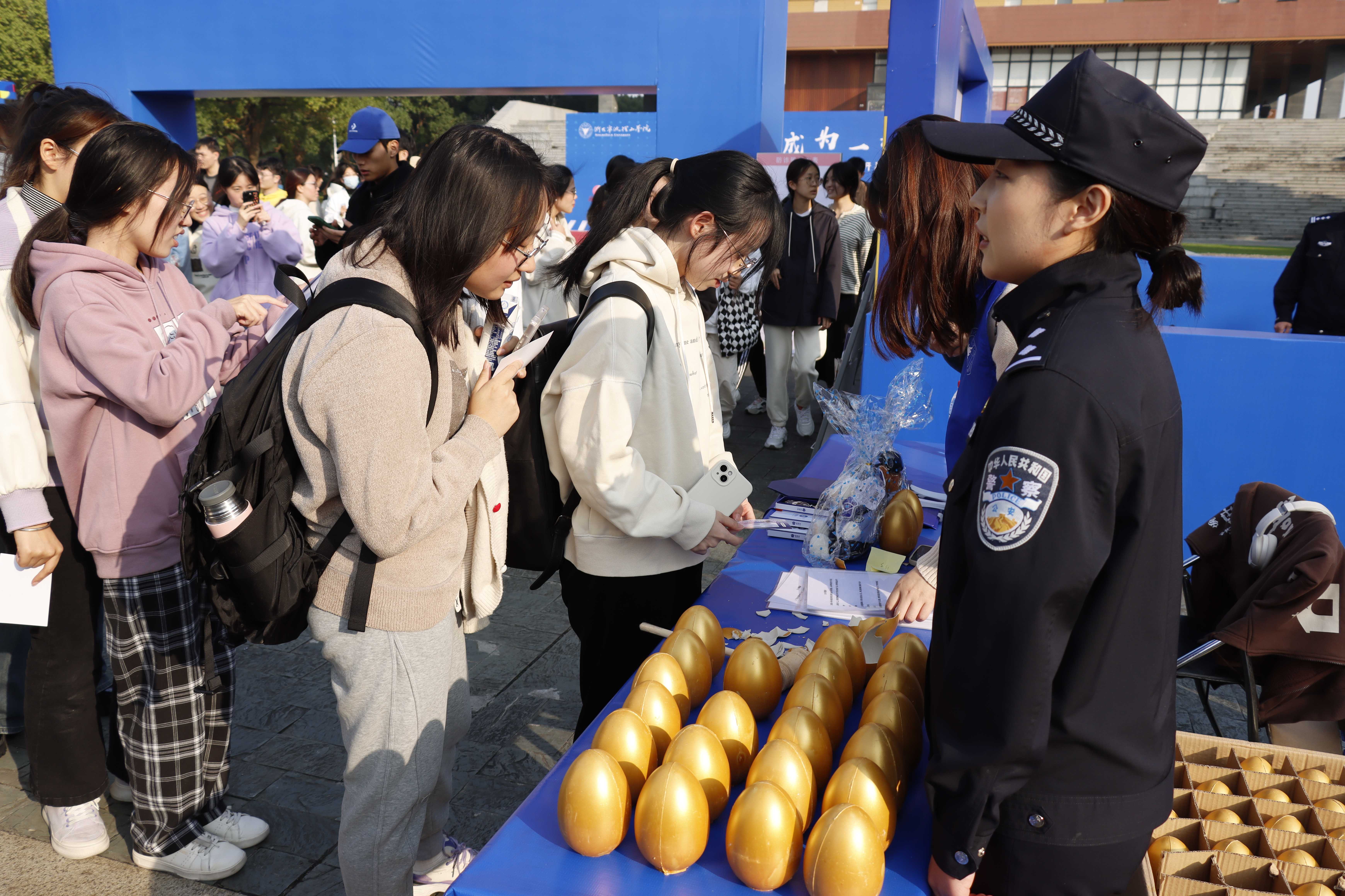 本次活动在宁理校园内设置一座“迷你校园”,围绕电信网络诈骗、消防、禁毒、交通安全等四个方面,设计安全知识科普与互动。学校还邀请文华派出所、交警首南中队、首南消防救援站、农业银行海曙支行等单位现场面对面和师生进行安全知识宣讲与科普,传授“安全防范干货”。