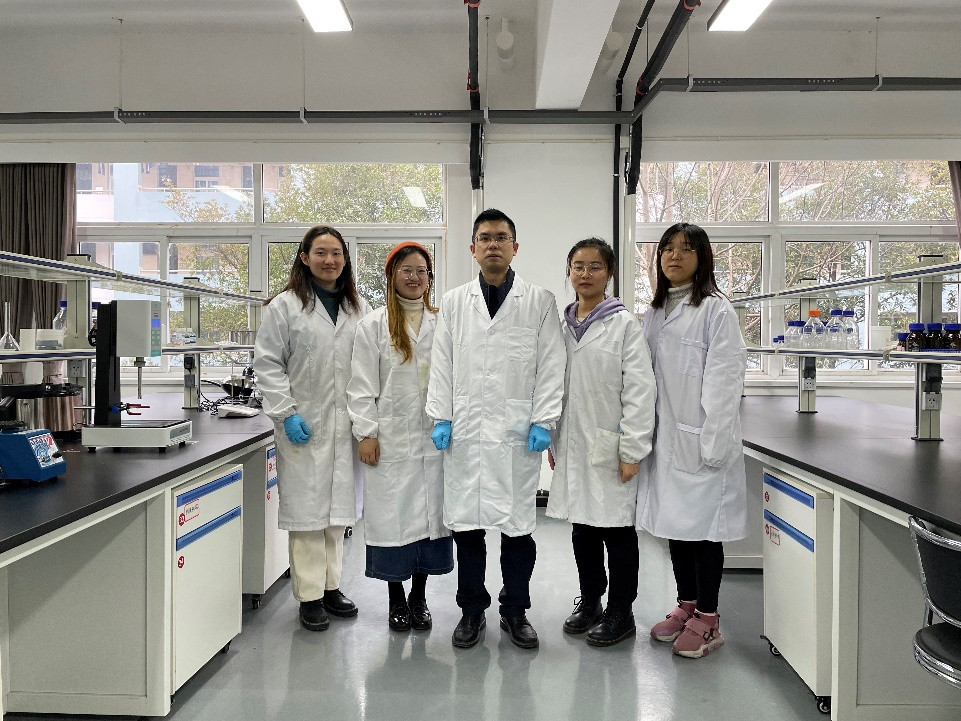 钟宇飞教授(左一)在开云kaiyun官网光电功能实验室。受访者供图