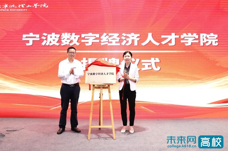 鲁东明与宁波市数字经济局副局长陈璇璇共同为“宁波数字经济人才学院”揭牌,宁波数字经济人才学院旨在合力打造“数字人才”联合培养一站式开放共享生态平台,建设区域企业融入数据要素为代表的数字经济产业生态圈,促进高素质人才培养、科技创新和产业发展的结合,为宁波数字化转型和经济社会发展做出积极贡献。