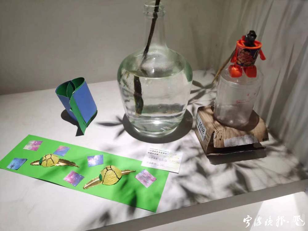 在黄老师的指导下,一件件别出心裁的工艺品在孩子们的手下诞生了。塑料瓶摇身一变成了飞机炮、火箭,纸杯和废纸被做成了“小怪兽”装饰品,橡皮泥被做成了海洋生物……“我们用彩纸、蛋托、小玩具和塑料瓶,做了一个在星空里爬行的小乌龟。没想到随手扔掉的东西还能这样利用,我们都很开心。”宁波市中原小学403班学生雷思瞳和她读幼儿园的弟弟一起,给废旧物品赋予了新的生命。